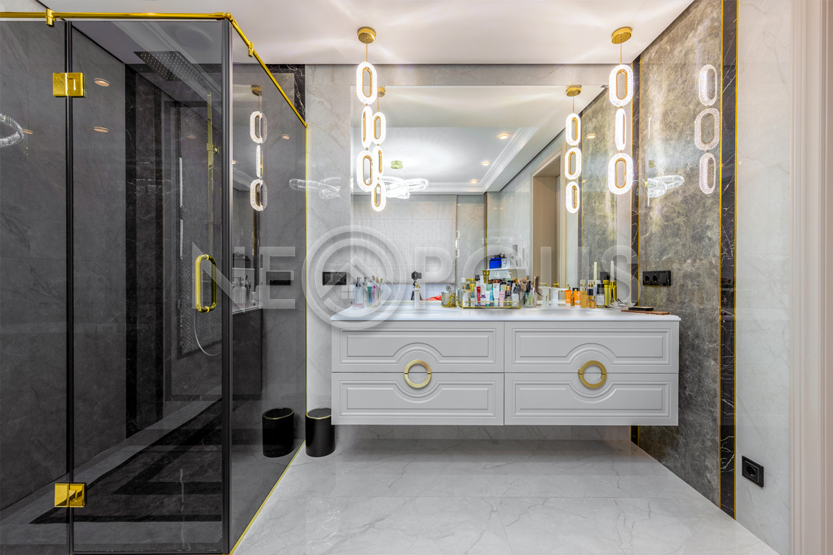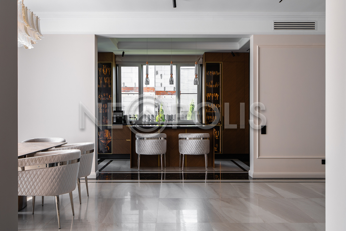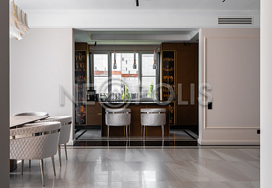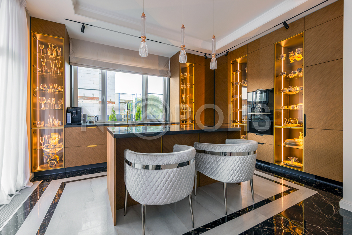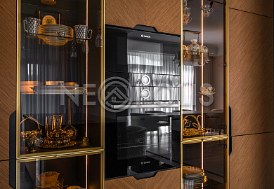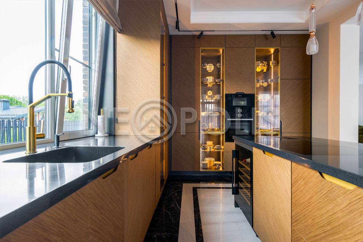 - Встроенная техника: ELICA и Liebherr, винный шкаф MAUNFELD