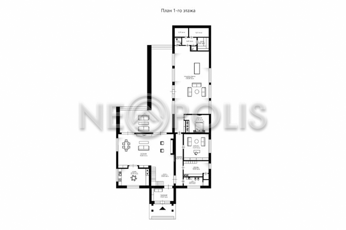 - 1 этаж:прихожая, холл с зоной хранения, кухня, столовая, гостиная с выходом на террасу, коридор, кабинет, санузел, постирочная; SPA зона: бассейн, сауна, комната отдыха, спальня, санузел, технические помещения.