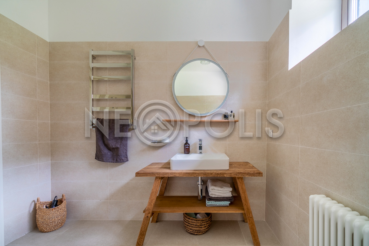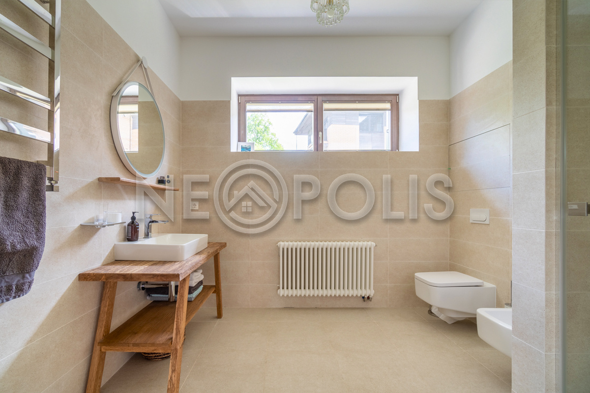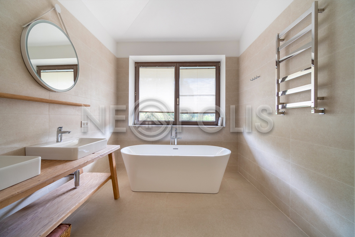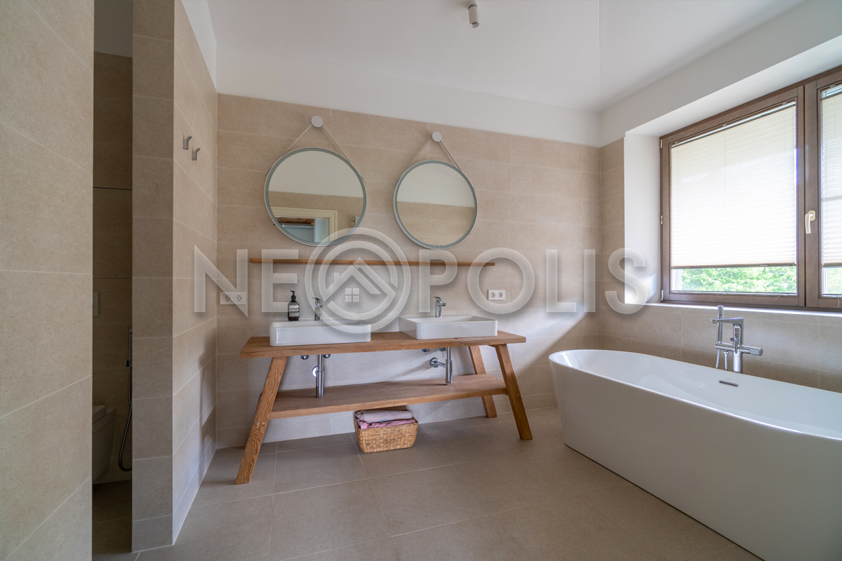 - Мебель: Javorina (Словакия). В кухне установлены: гарнитур с фасадами из массива дуба (ARAN, Италия) со столешницей из искусственного камня и встроенной бытовой техникой (KUPPERSBUSCH), холодильник двухстворчатый (Franke, Швецария), вытяжка (Elica, Италия)
