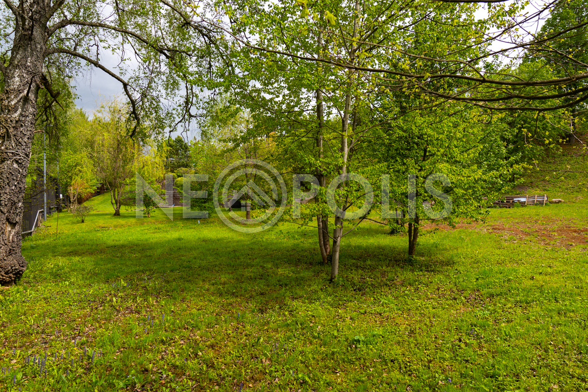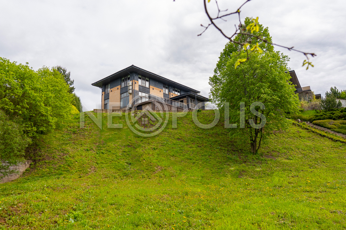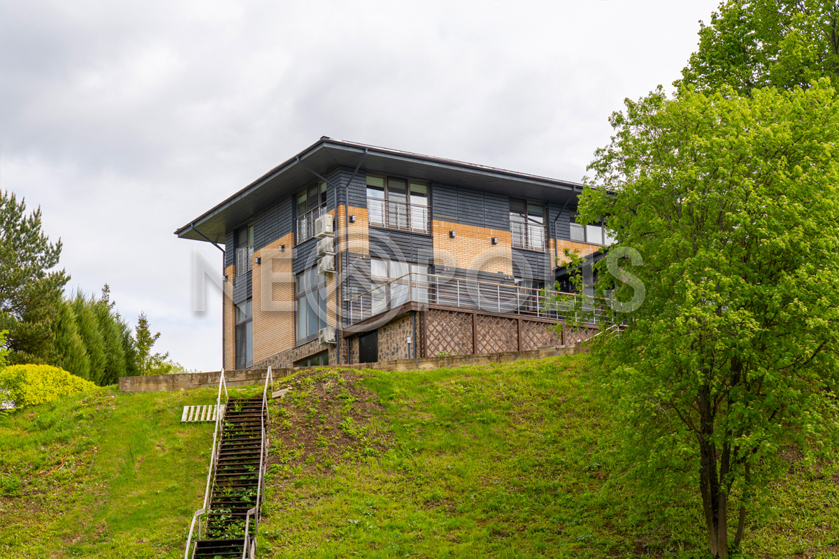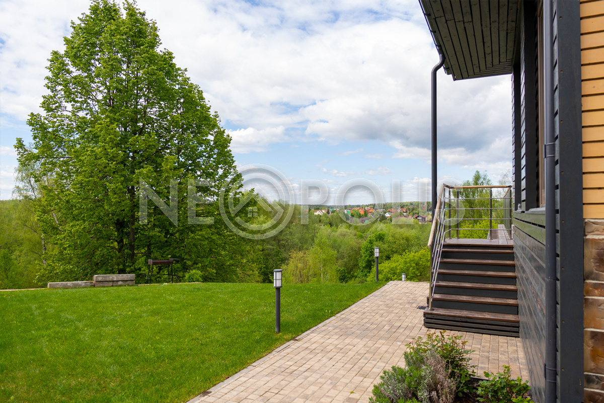 Видовой двухуровневый участок (перепад высот около 13 м) с живописным ландшафтом и уклоном к реке граничит с лесом, расположен в конце коттеджного посёлке в тихом месте, удалённом от шума дорог.