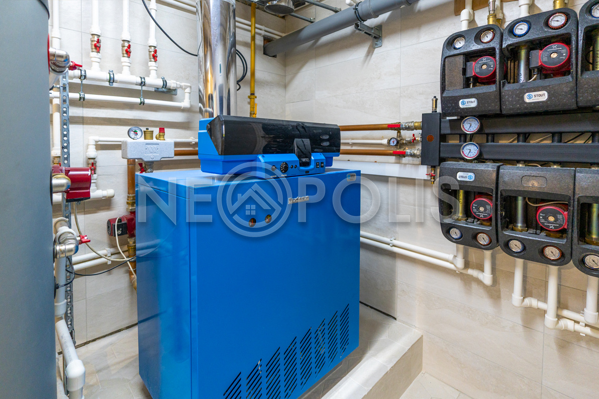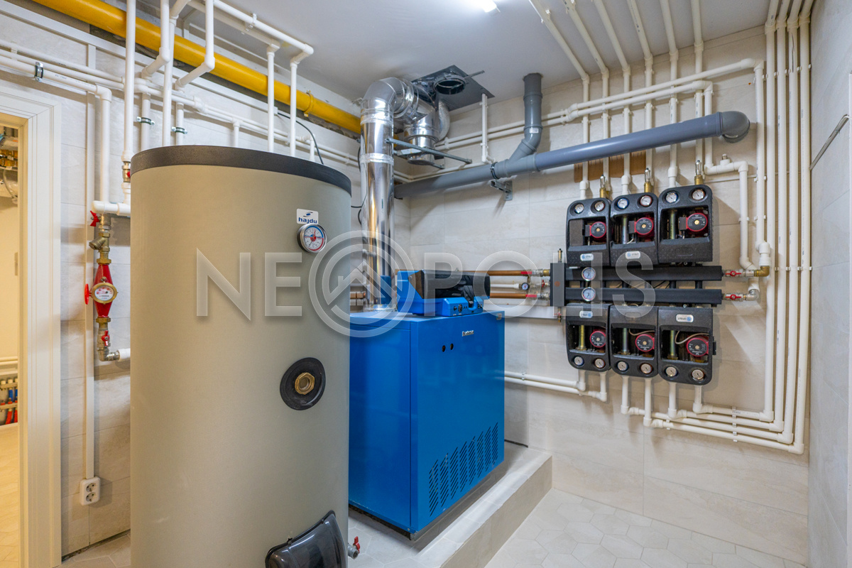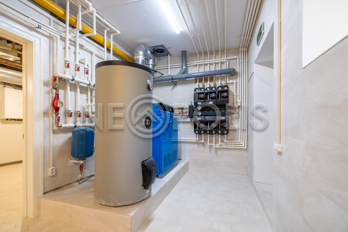 - Вентиляция: центральная приточно-вытяжная система вентиляции (Vertro). Есть предподогрев входящего воздуха от газового котла
