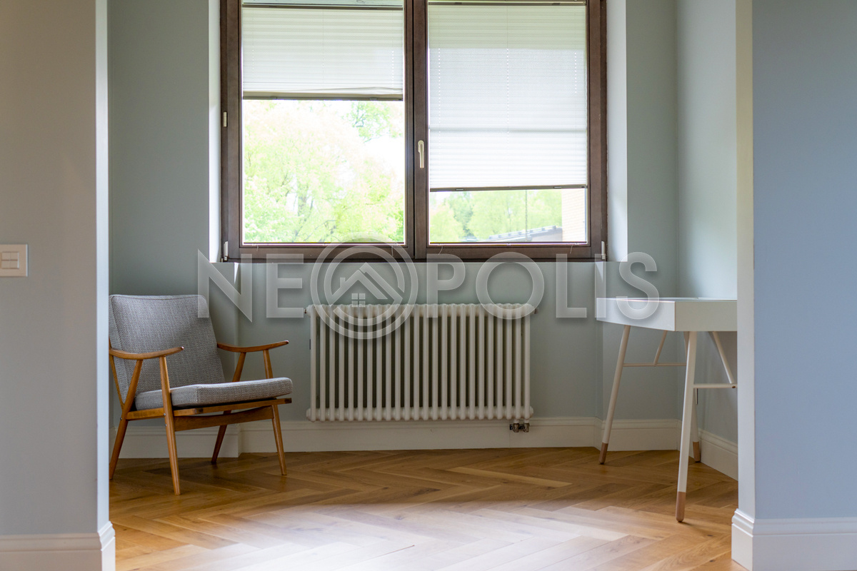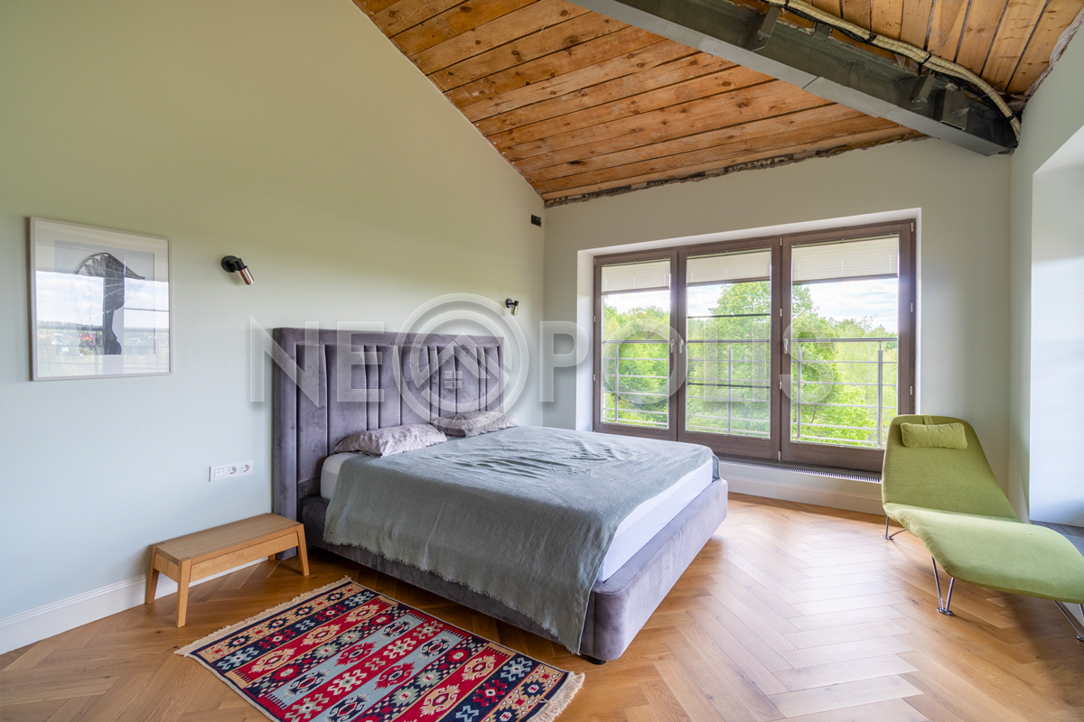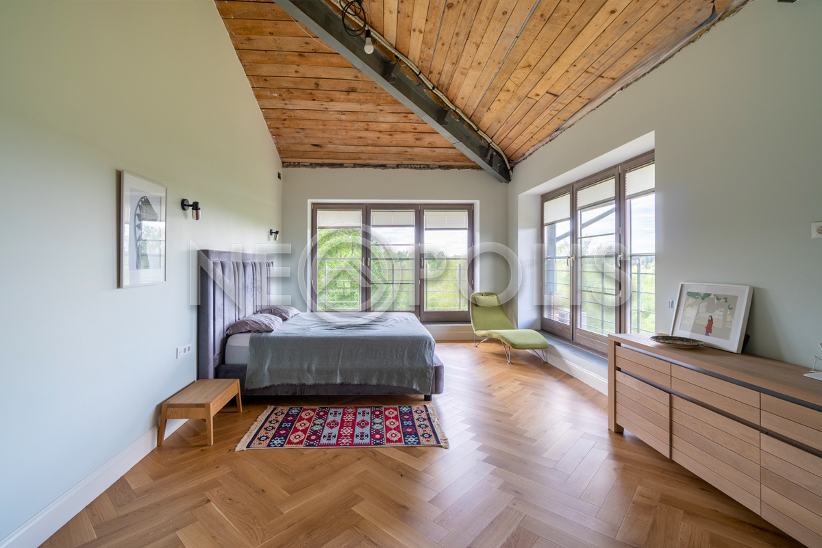 - Окна: деревянные (рамы из лиственницы), двухкамерные стеклопакеты. В гостиной – окна в пол. В 2022 году проведена реставрация всех окон