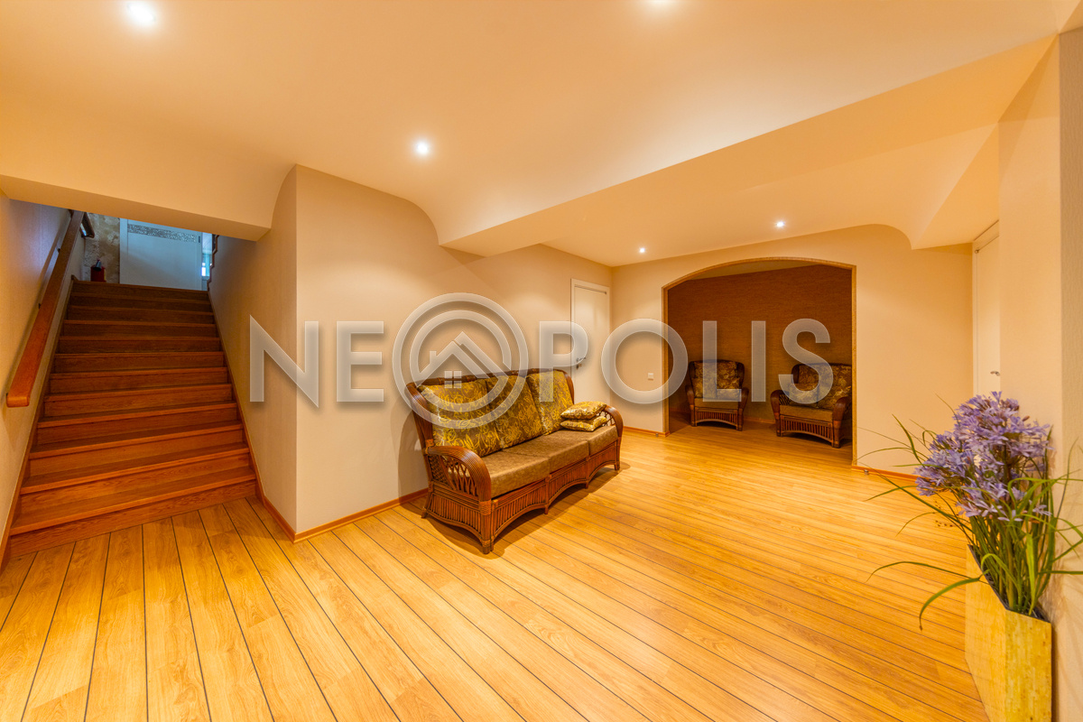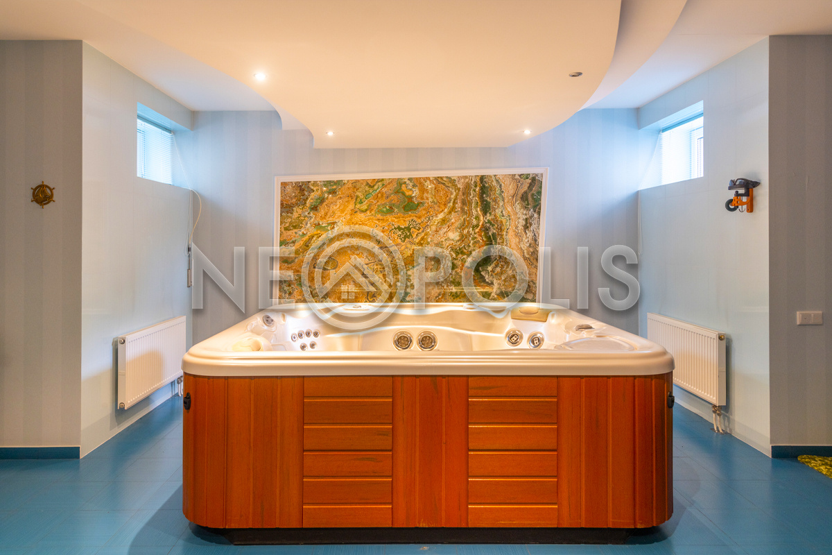 - Цоколь:холл, комната отдыха, сауна, зона с джакузи, бильярдная, тренажерный зал, санузел, гладильная-постирочная.