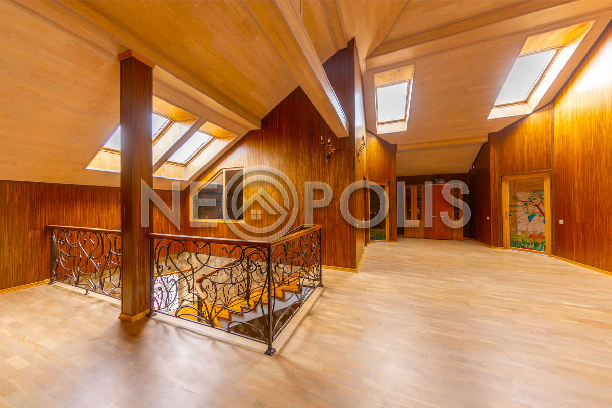 - 2 этаж:холл, 3 спальни с гардеробными и ванными комнатами, кабинет, библиотека, зимний сад.