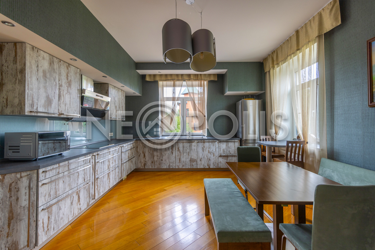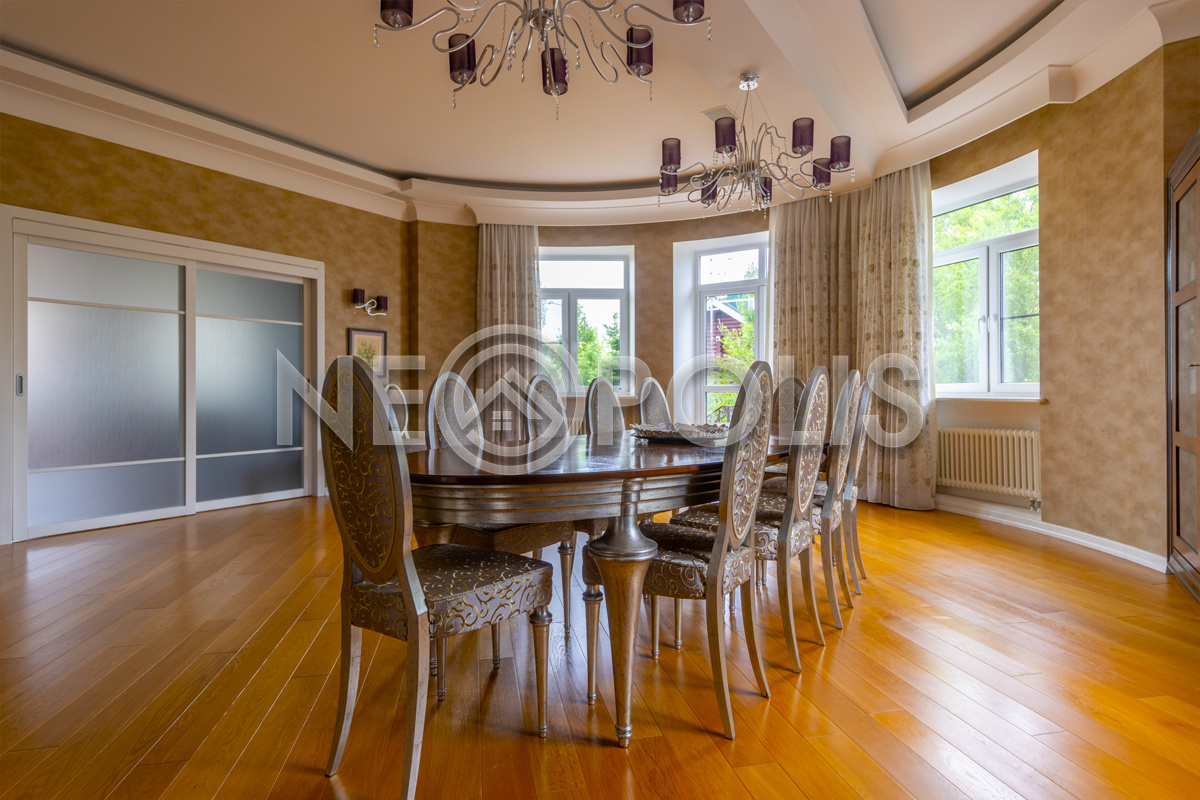Объект расположен в комфортном для проживания поселке, на благоустроенном участке с видом на лес и ландшафтным дизайном. Полностью готов к круглогодичному проживанию. Отделка выполнена в классическом стиле из дорогих натуральных материалов.