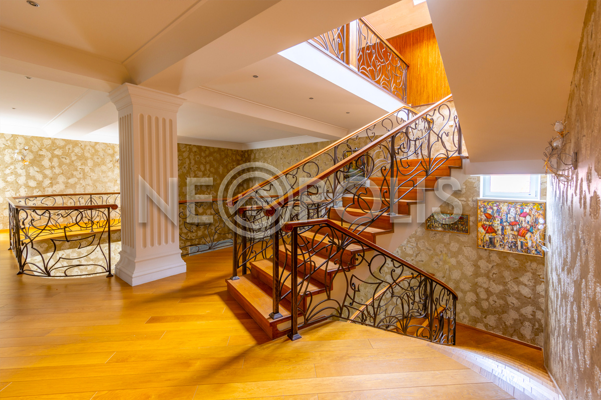 - Лестница: монолитное основание, ступени - дуб, перила - ковка ручной работы