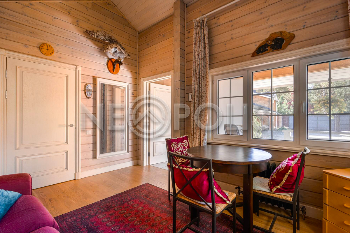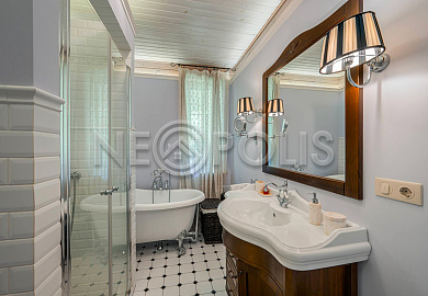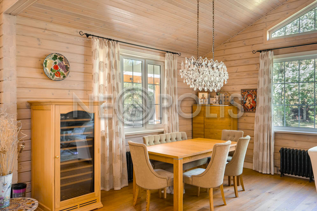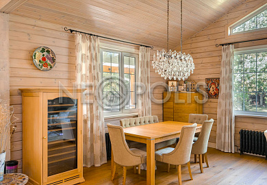 Объект расположен в комфортном для проживания поселке, на благоустроенном участке с видом на лес и ландшафтным дизайном. Полностью готов к круглогодичному проживанию. Отделка выполнена в классическом стиле из дорогих натуральных материалов.