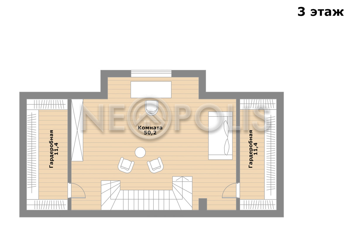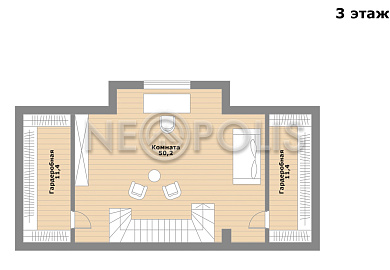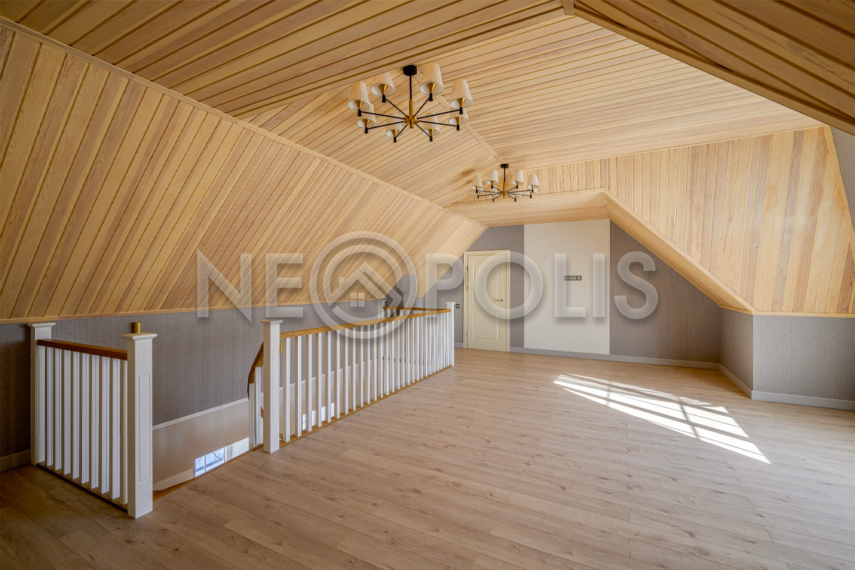 - Мансарда:гостиная-кабинет с двумя гардеробными.