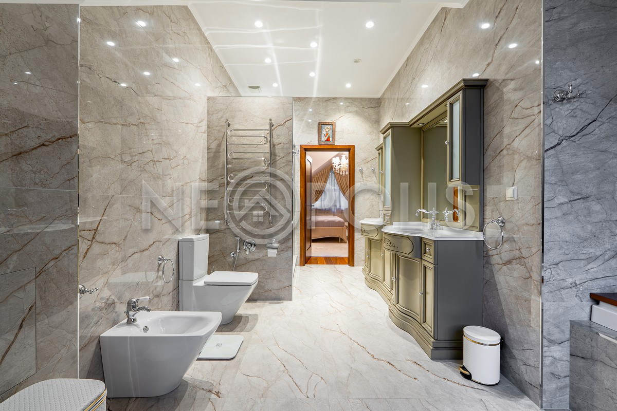 - 2 этаж:холл-библиотека, мастер-спальня с гардеробной и ванной комнатой, две спальни с общей ванной комнатой.