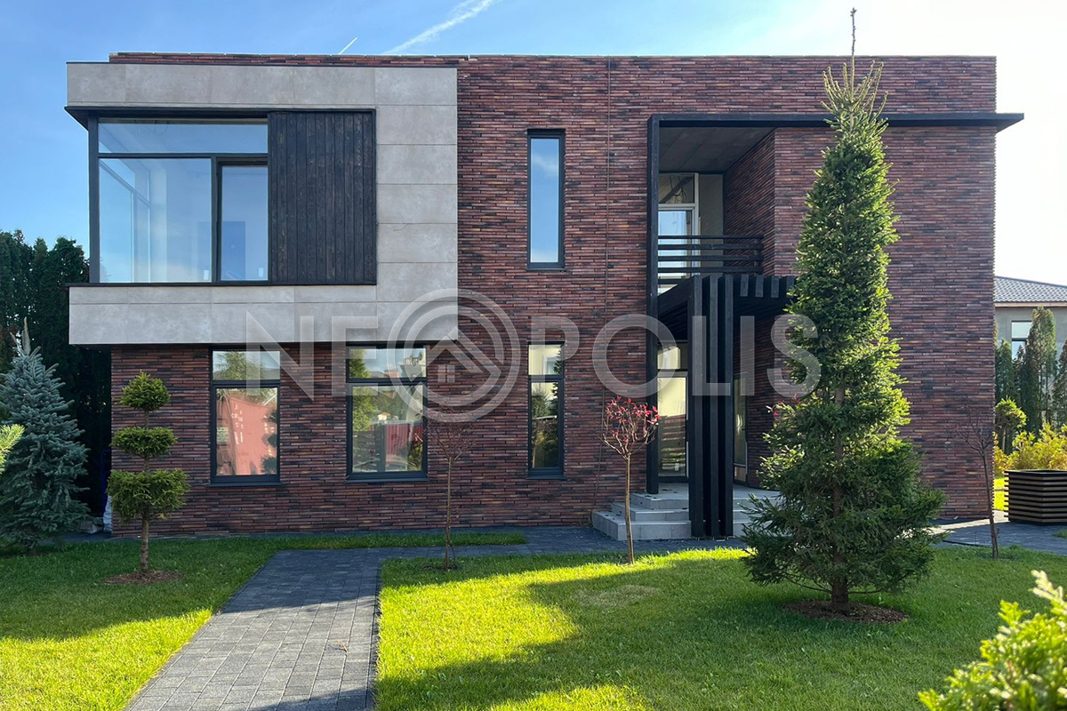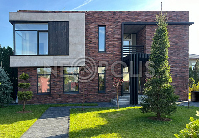 - Материал стен керамзитобетонные блоки толщиной 40 см, утеплитель пеноплекс 70мм, общая толщина стен 50 см, фасад - декоративный ригельный кирпич White Hills Бран Брик