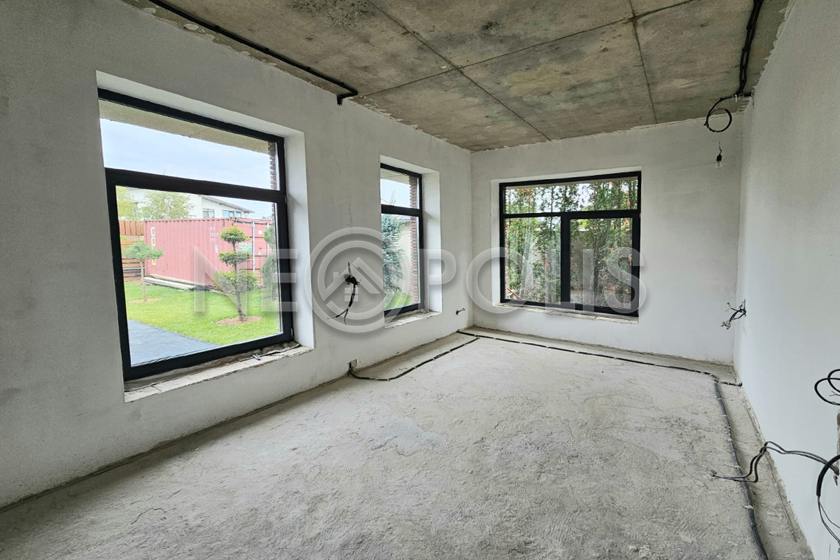 - Окна: стеклопакеты ПВХ (2-х камерные, панорамные (от пола), ламинированные, цвета графит)