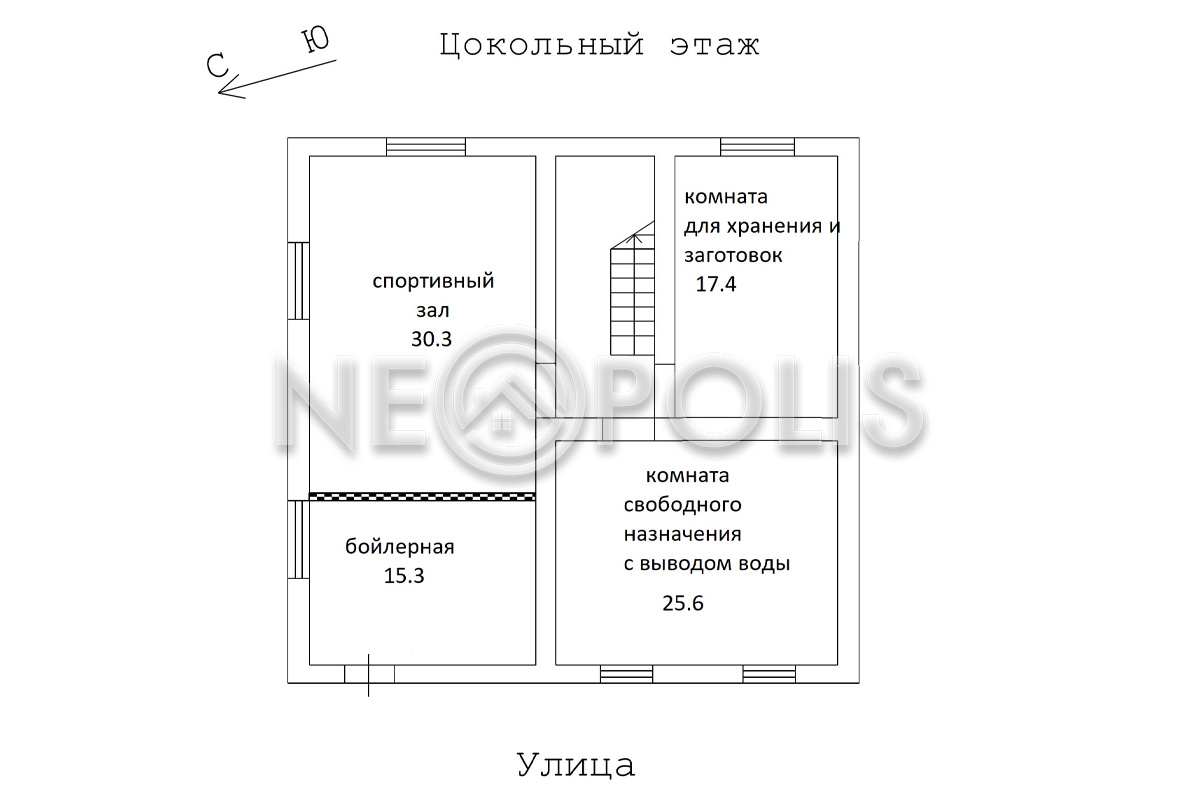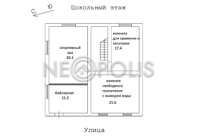 - Цоколь:лестничный холл, тренажерный зал, комната свободного назначения с выводом воды, кладовая, бойлерная с отдельным входом с улицы.
