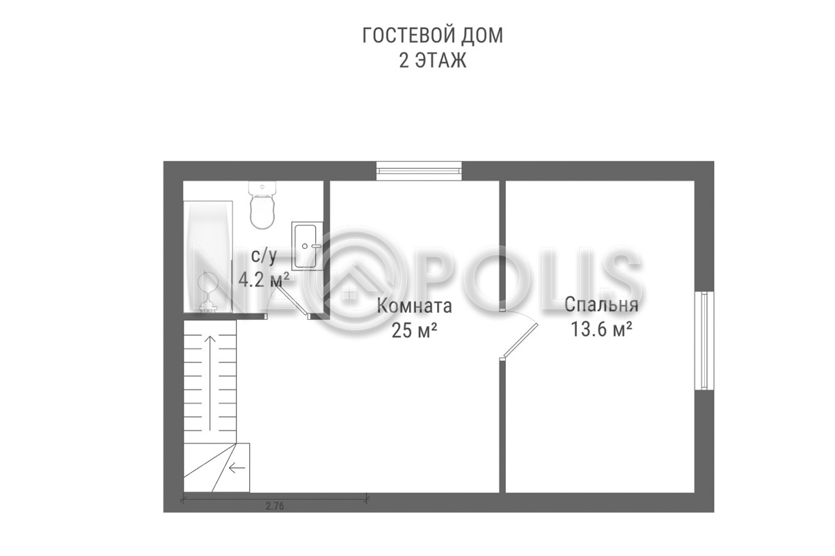 Гостевой дом 80 кв.м. (под ключ; отопление: от основного дома идёт теплотрасса под землёй, водяные тёплые полы + радиаторы, свой бойлер.):