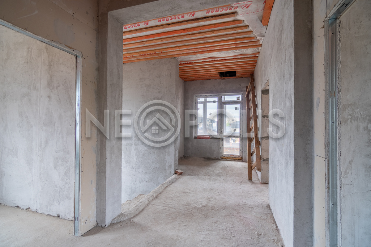 - Материал стен: газосиликатные блоки, шириной 25 см + 5 см утеплитель; внешние стены - оштукатурены под покраску.