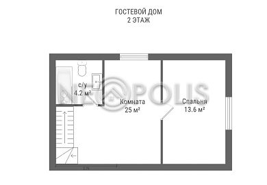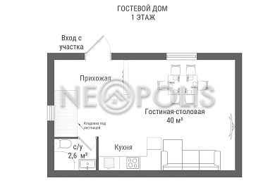 1 этаж: прихожая, кухня, гостиная-столовая, санузел.