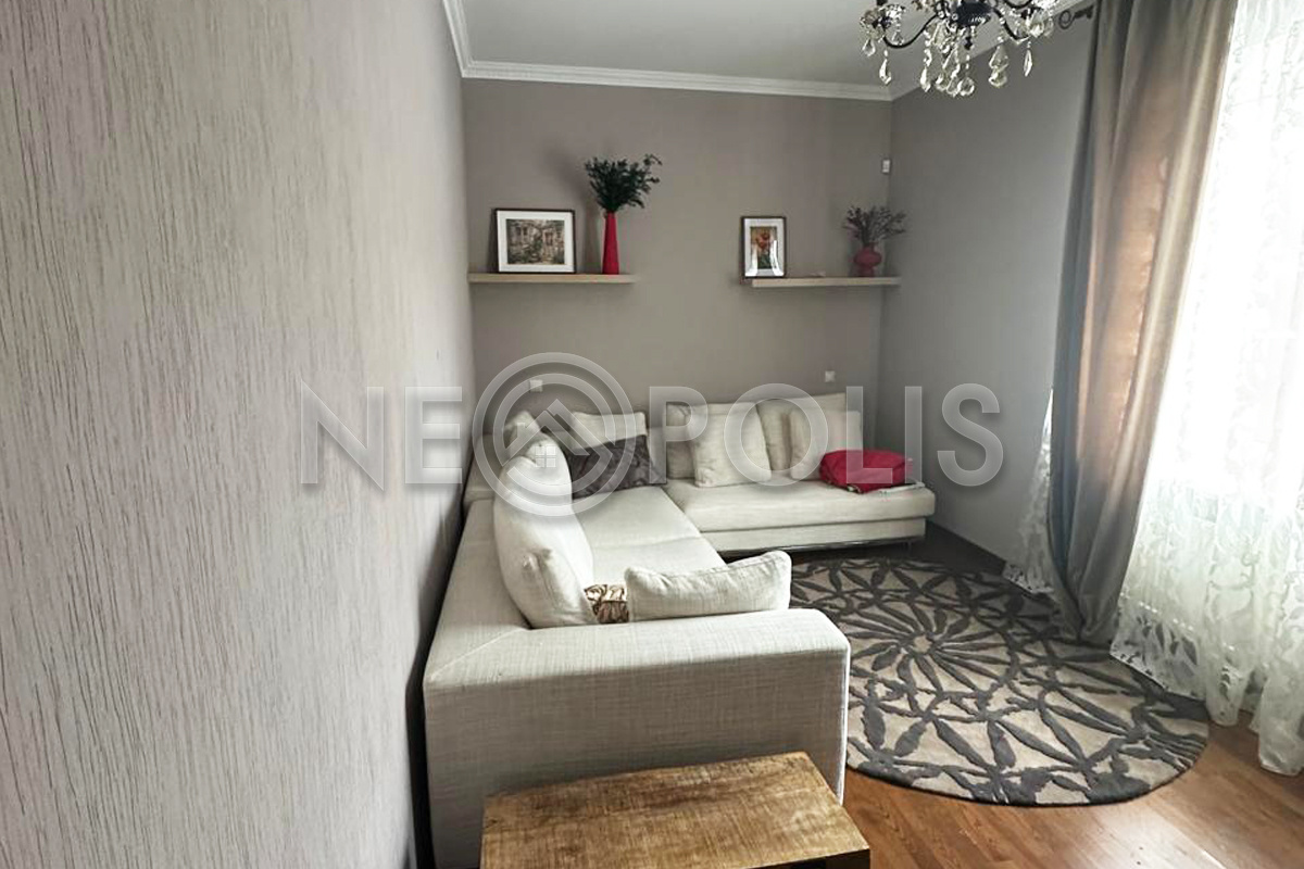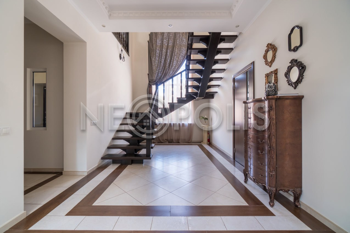 - Элитная мебель из массива дерева (в столовой, прихожей и других помещениях), в гостиной - дорогостоящая люстра.