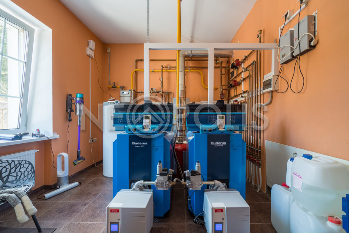 - Газовое оборудование 2 газовых котла Buderus (100кВт каждый)