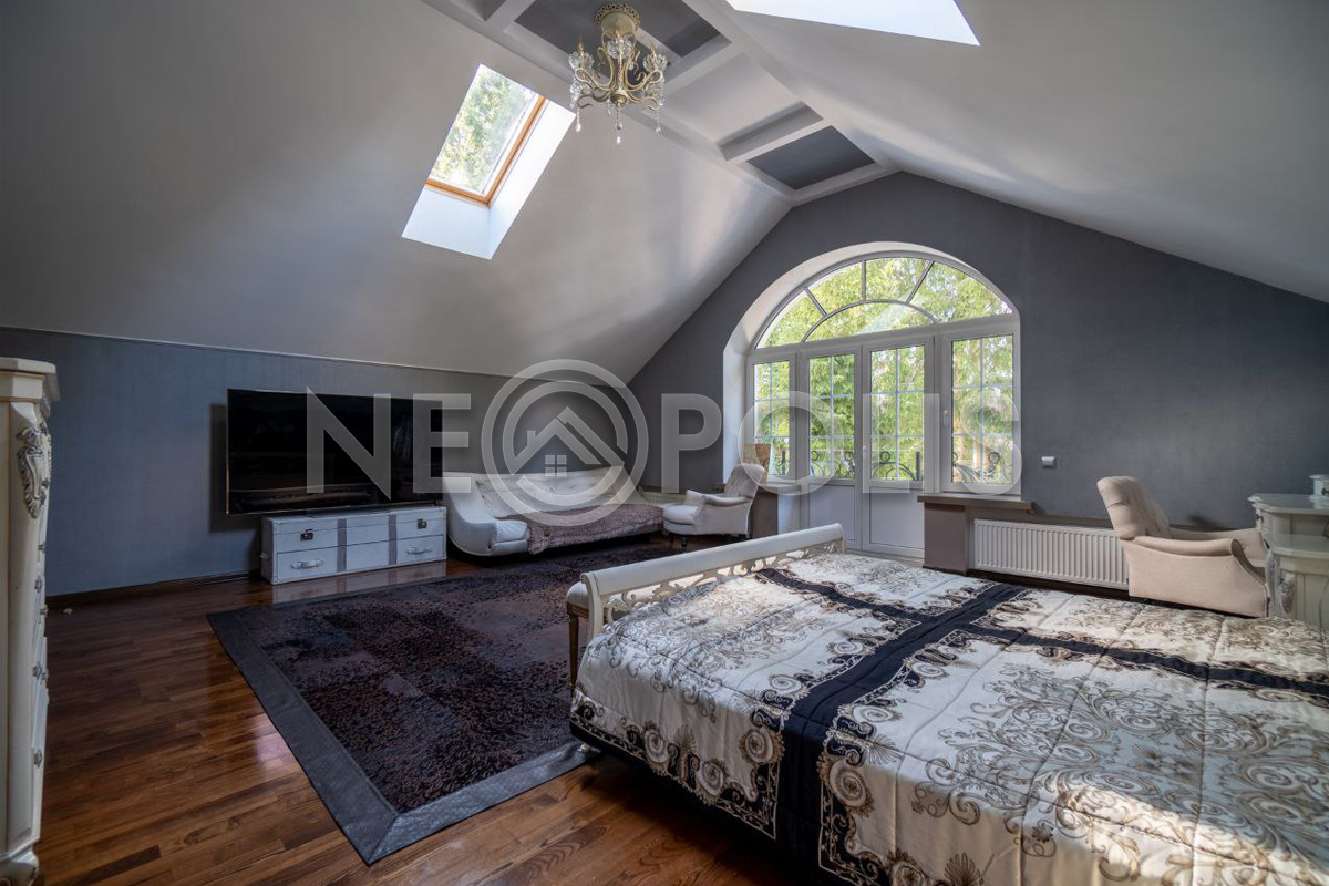 - 2-й этаж:Холл-галерея; мастер-спальня с санузлом, ванной и гардеробной; спальня с санузлом и выходом на балкон; спальня; кинотеатр; кабинет; санузел; гардеробная; постирочная. Отдельная жилая зона (квартира) с лестницей: холл, спальня, санузел