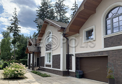 - Кровля мягкая (KATEPAL, подшивка кровли - лиственница, металлический водосток)