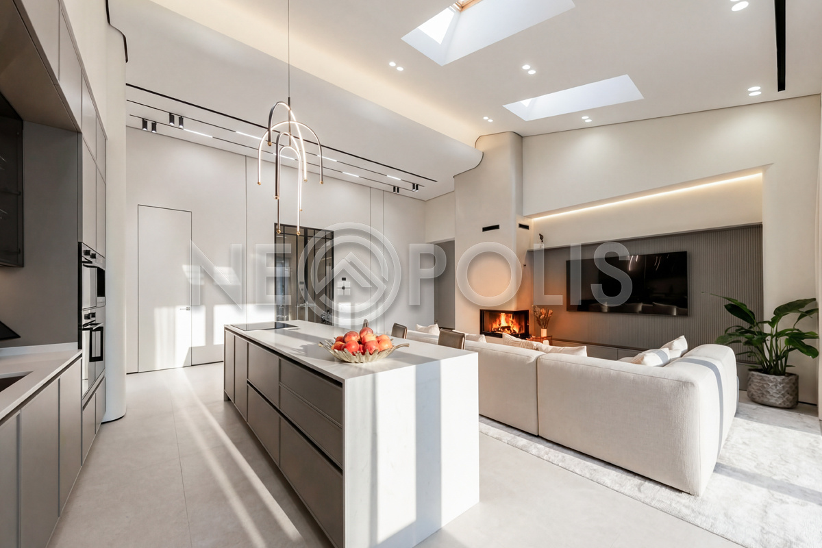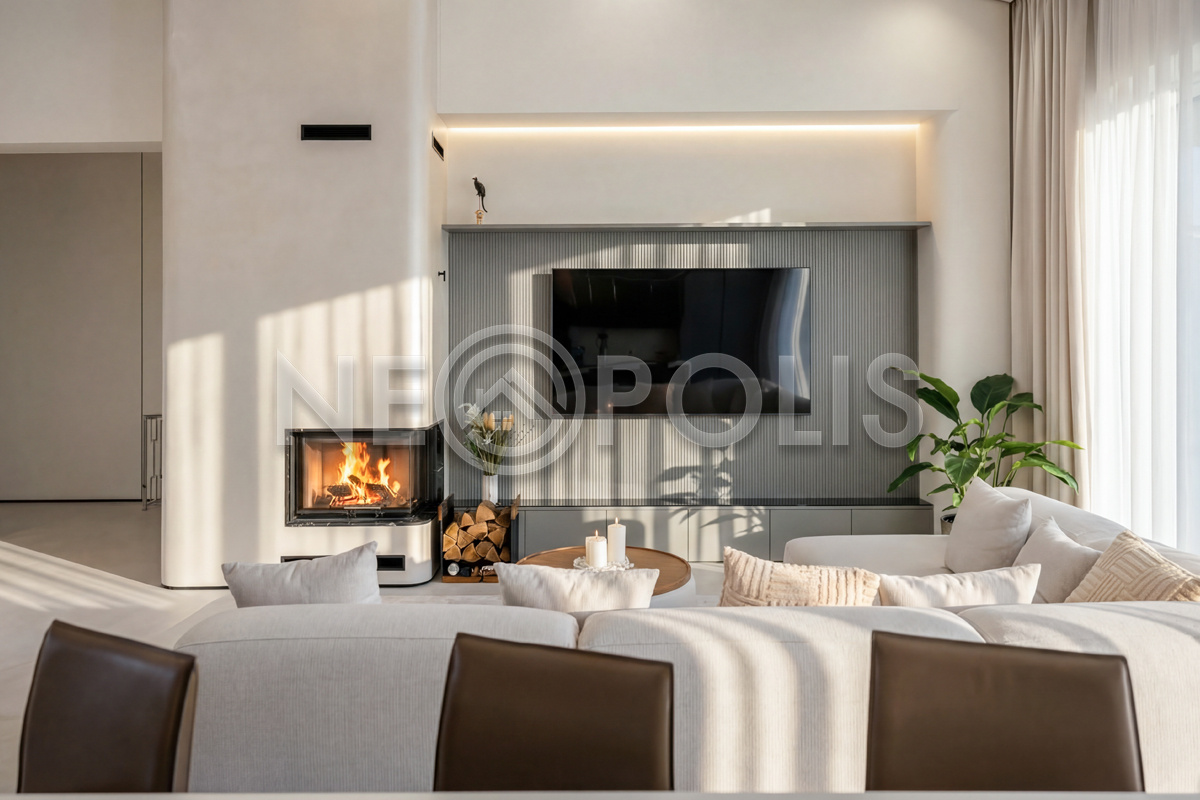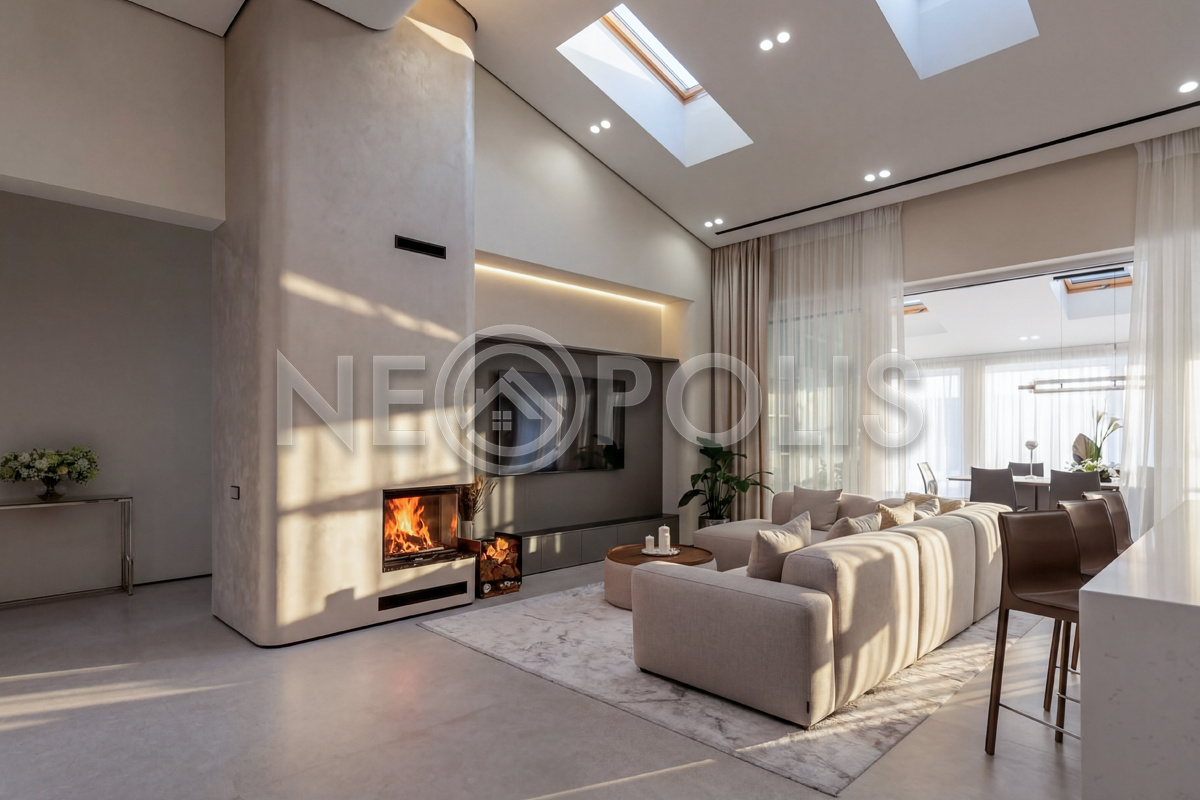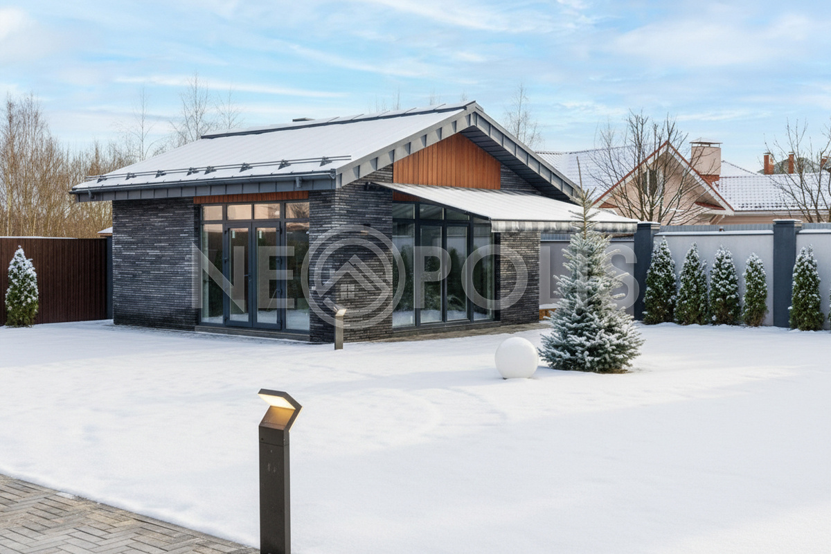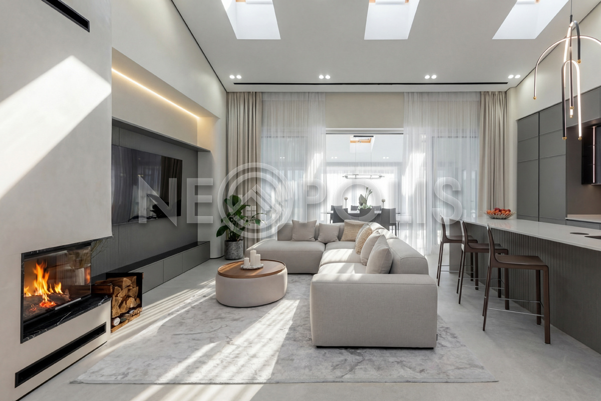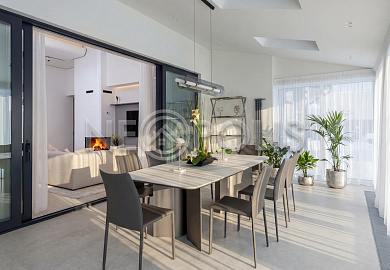 Всесезонная зона барбекю 46 кв.м. – гриль, зона отдыха, кухня, дровяной камин, санузел с душем, кондиционирование, панорамное остекление с механизмом полного открывания, электрическая маркиза с летней площадкой для отдыха