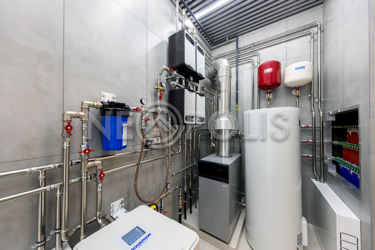 - Оборудование: котел BAXI мощностью 44 квт, бойлер 200л, система очистки воды
