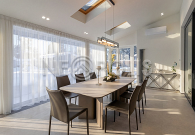 Объект расположен в комфортном для проживания поселке, на благоустроенном участке с видом на лес и ландшафтным дизайном. Полностью готов к круглогодичному проживанию. Отделка выполнена в классическом стиле из дорогих натуральных материалов.
