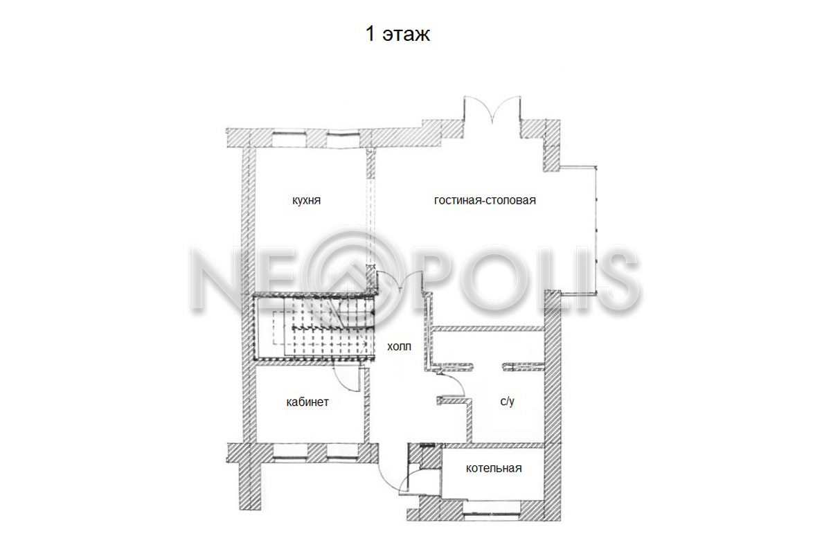 - 1-й этаж:Просторная прихожая, гостевой санузел с душевой кабиной, отдельная постирочная комната, уютный кабинет, объединенная кухня - гостиная с выходом на крытую террасу