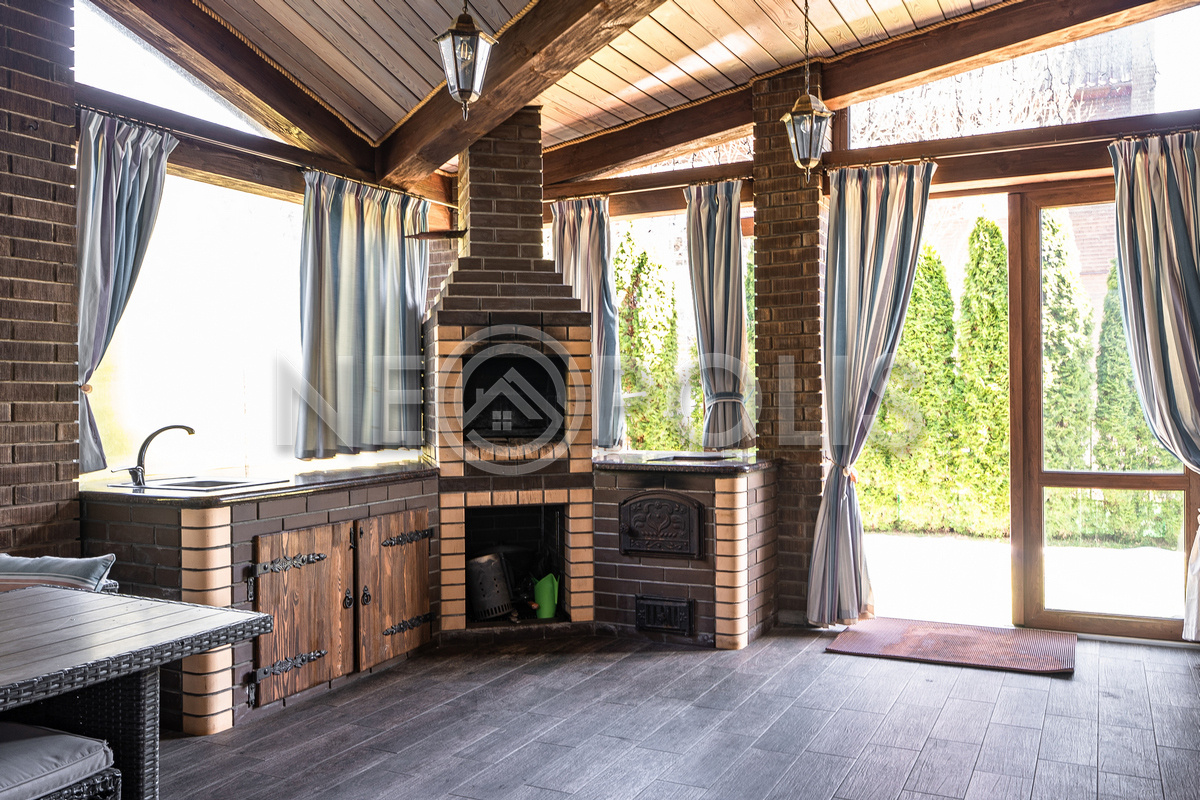 Терраса оборудована барбекю для приготовления шашлыков и плова, комфортабельной садовой мебелью