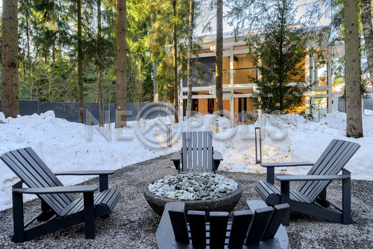 Оборудованы костровая зона, просторное патио с выходами из гостиной и кухни.