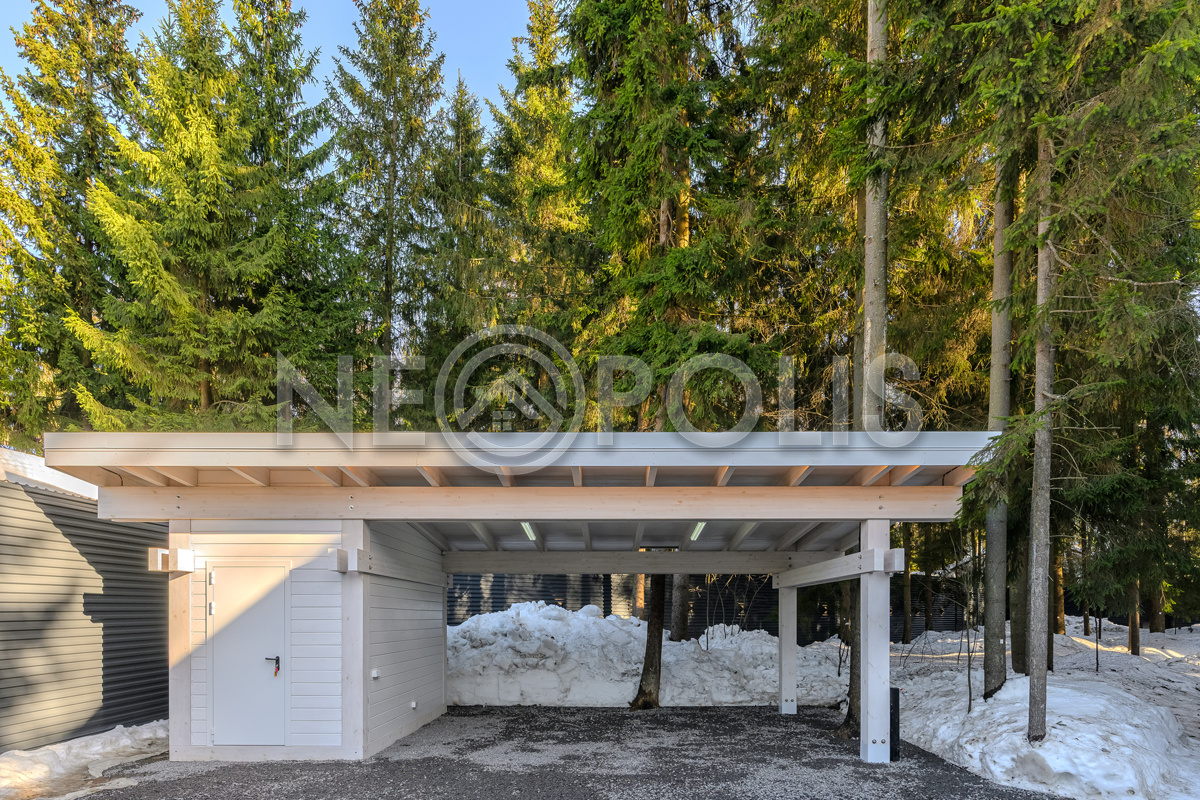Навес на 2 м/м с хозблоком с подготовкой под зарядное устройство для электромобилей.