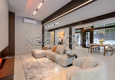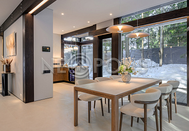 Объект расположен в комфортном для проживания поселке, на благоустроенном участке с видом на лес и ландшафтным дизайном. Полностью готов к круглогодичному проживанию. Отделка выполнена в классическом стиле из дорогих натуральных материалов.