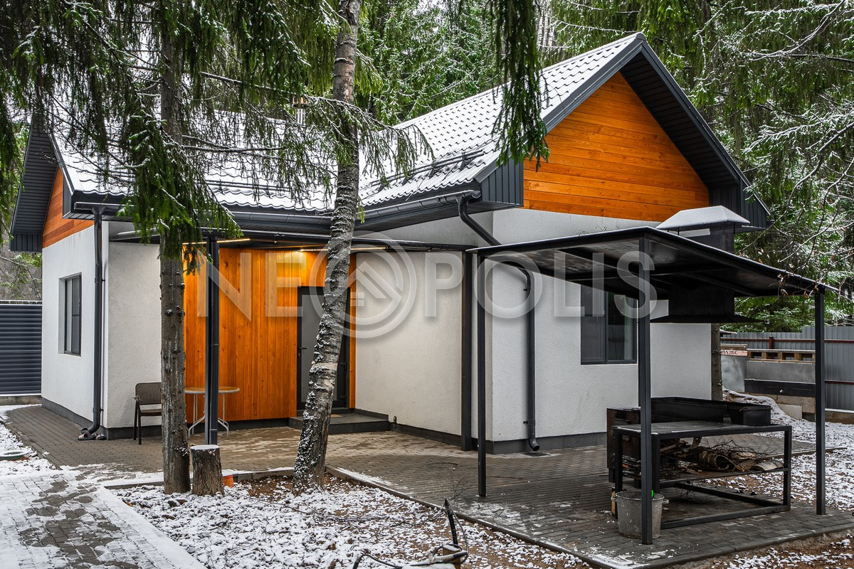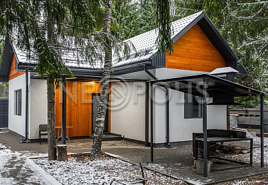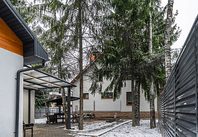Строго охраняемый коттеджный поселок в хвойном лесу.