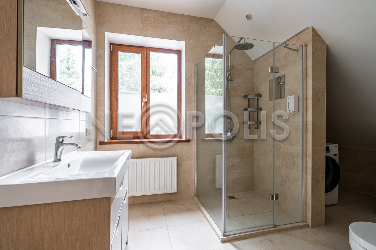 - Полы 1-й этаж: в кухне-гостиной и во всех санузлах: итальянская плитка с водяным подогревом, 2-й этаж: паркетная доска