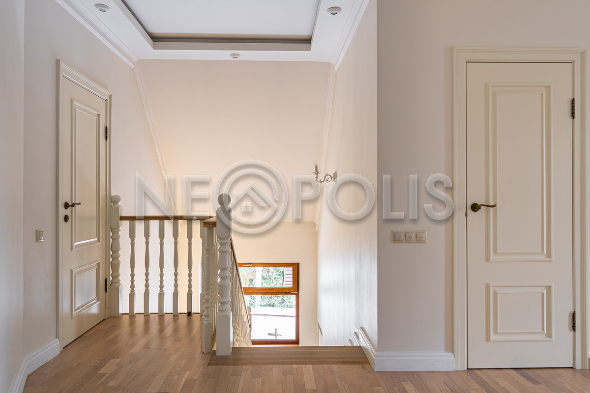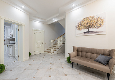 Объект расположен в комфортном для проживания поселке, на благоустроенном участке с видом на лес и ландшафтным дизайном. Полностью готов к круглогодичному проживанию. Отделка выполнена в классическом стиле из дорогих натуральных материалов.