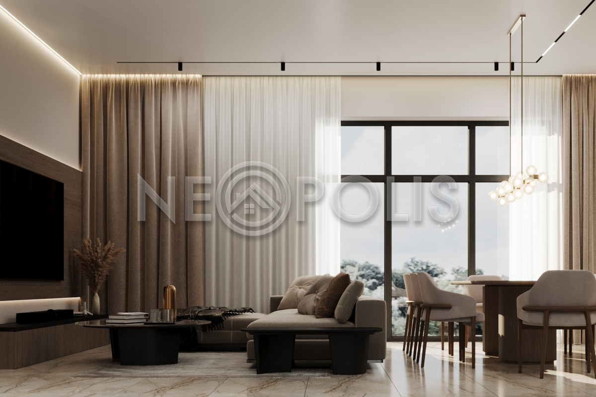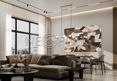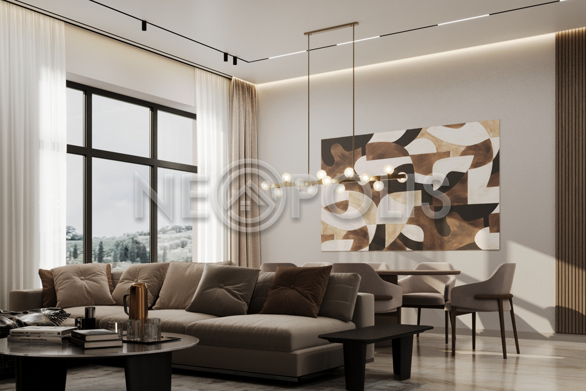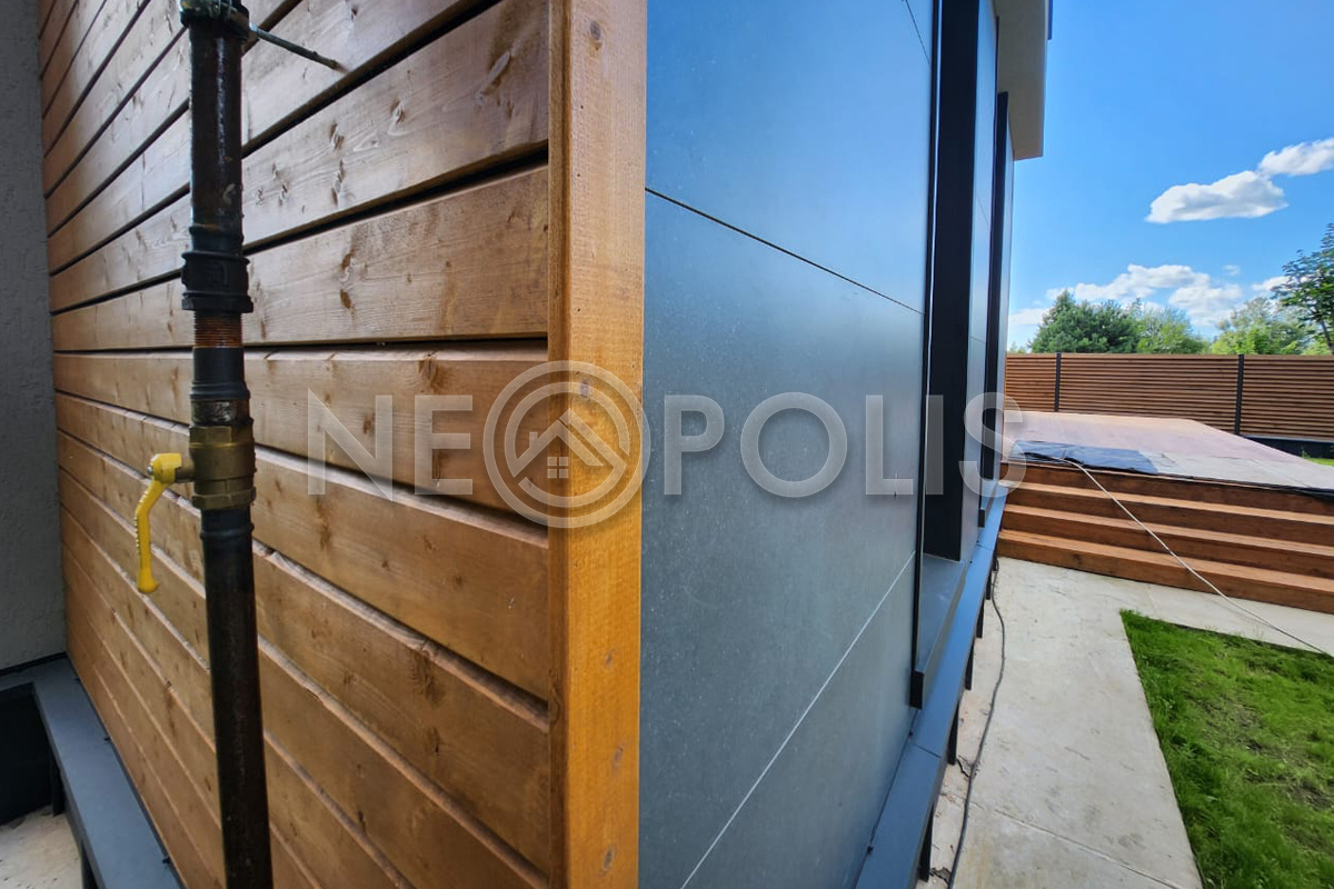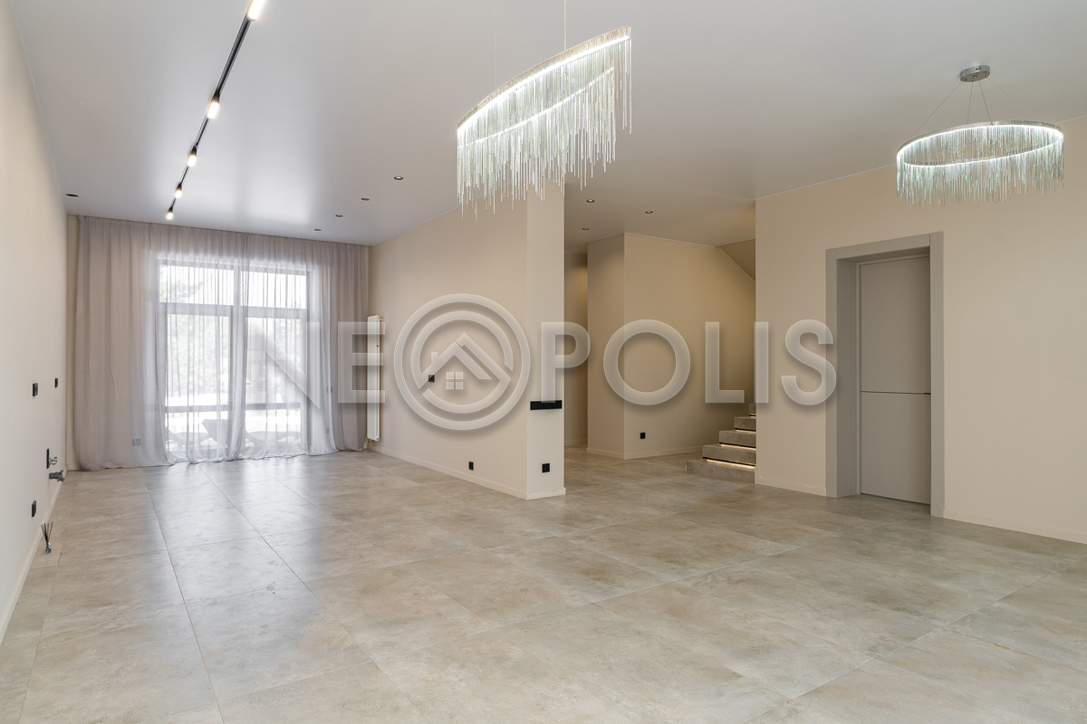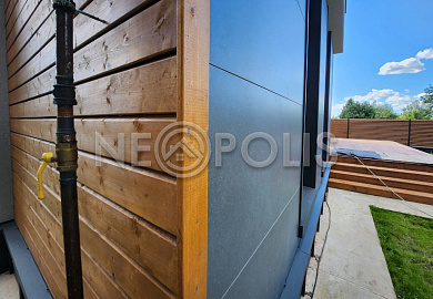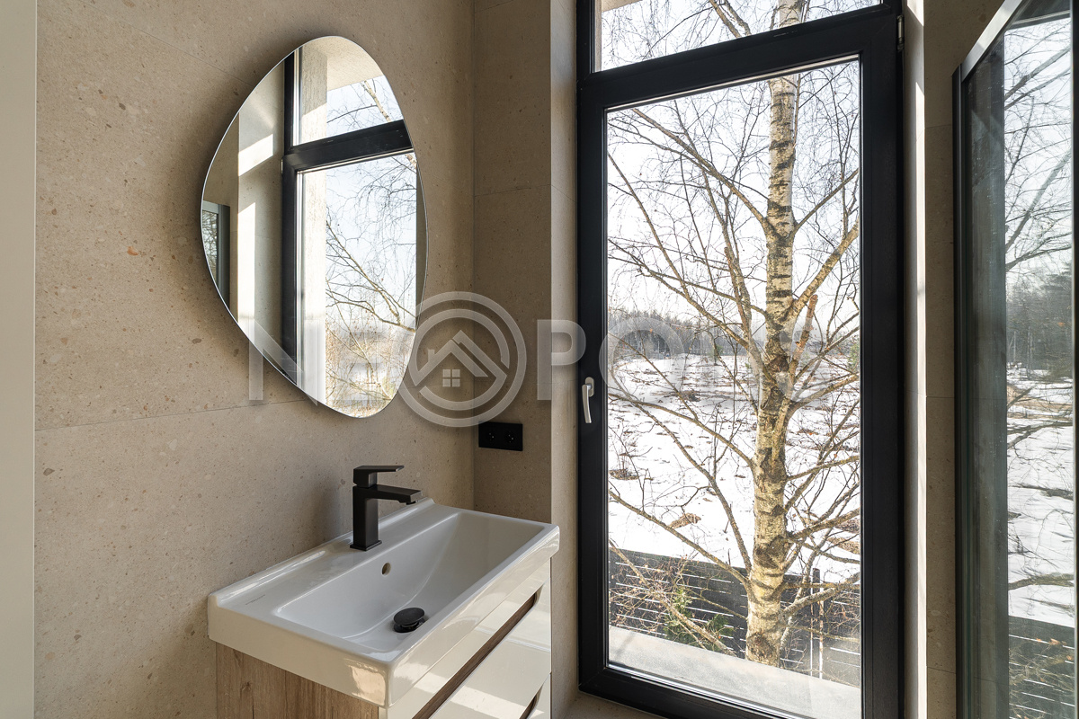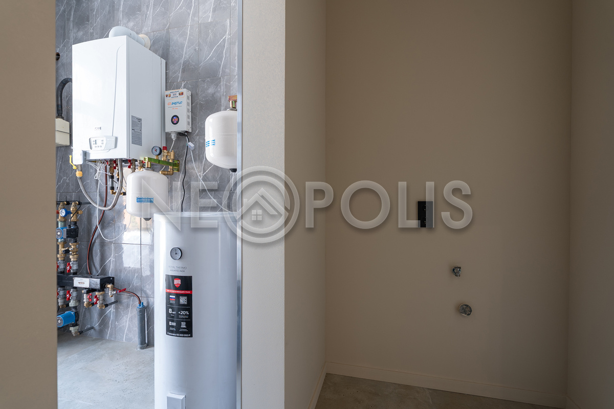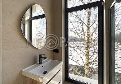 - 1-й этаж:просторный холл с гардеробной, гостиная с панорамными окнами, столовая, кухня с выходом на веранду, спальная комната, ванная комната, постирочная, бойлерная.