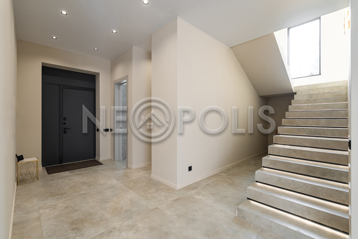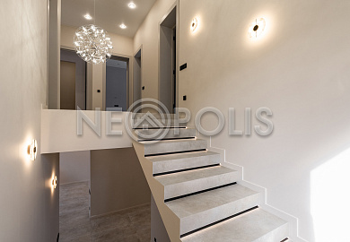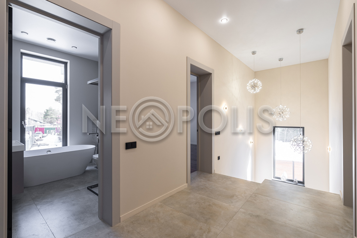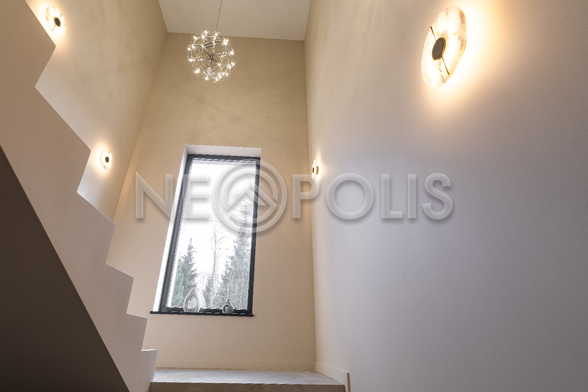 - 2 этаж:холл-библиотека, мастер-спальня со своими гардеробной и ванной комнатами, спальня с ванной комнатой, 2 спальни и просторная ванная комната.