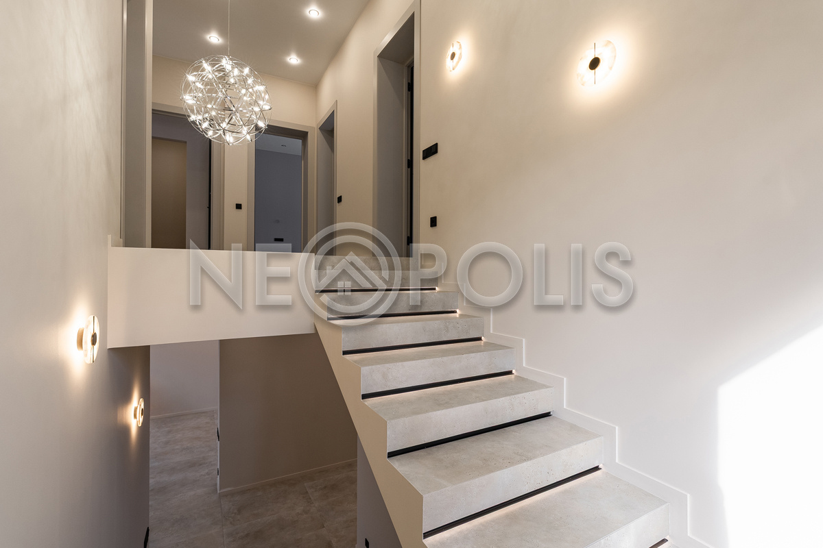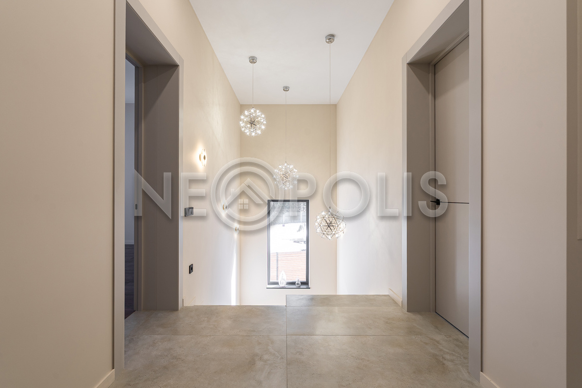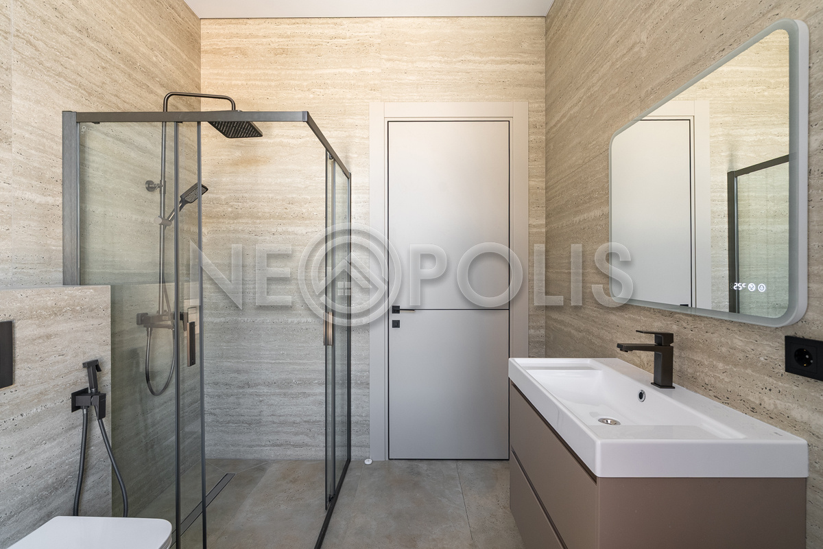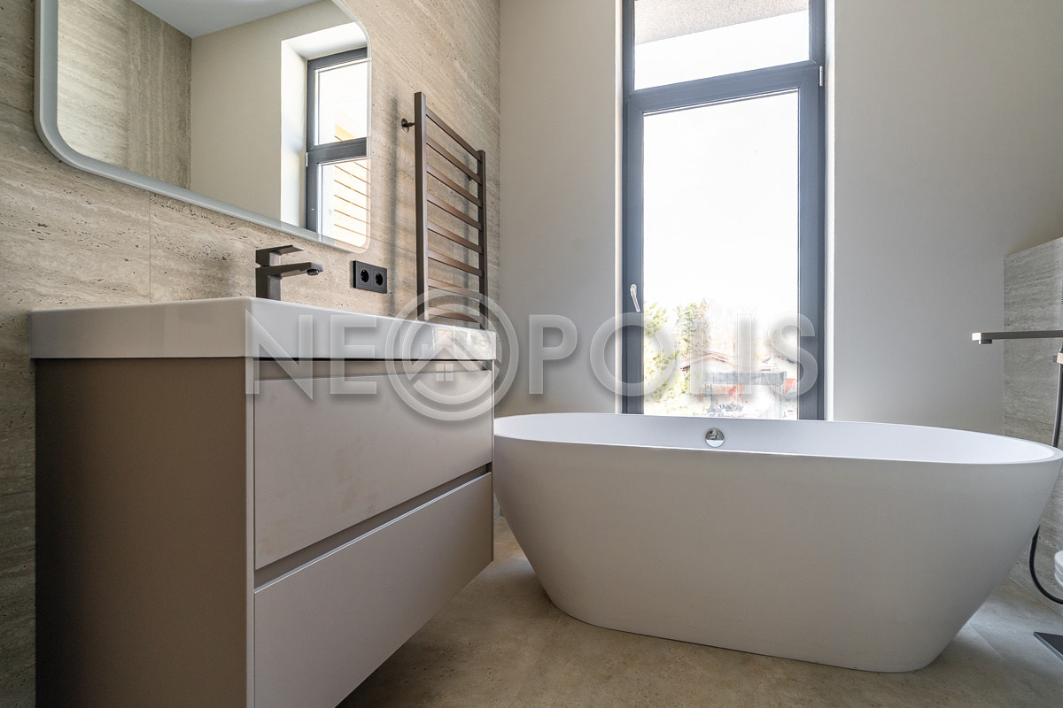 - 2 этаж:холл-библиотека, мастер-спальня со своими гардеробной и ванной комнатами, спальня с ванной комнатой, 2 спальни и просторная ванная комната.