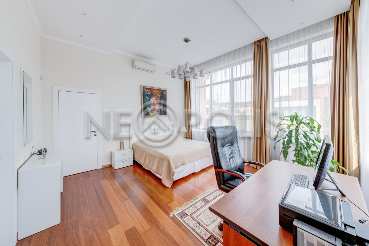 - 2-й этаж:мастер-спальня с санузлом, гардеробной и выходом на балкон, две спальни с общим санузлом и выходом на балкон