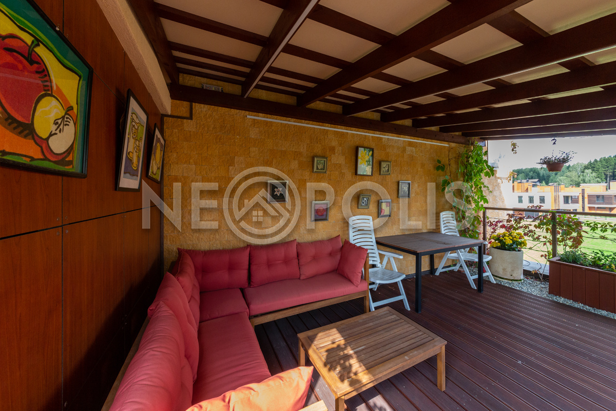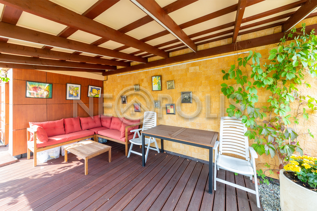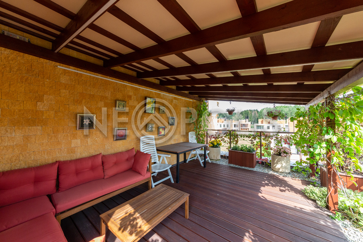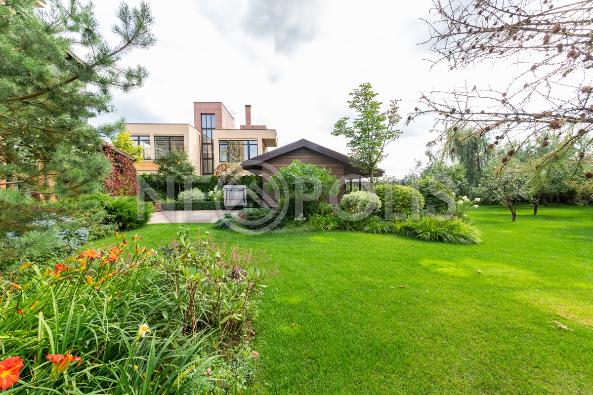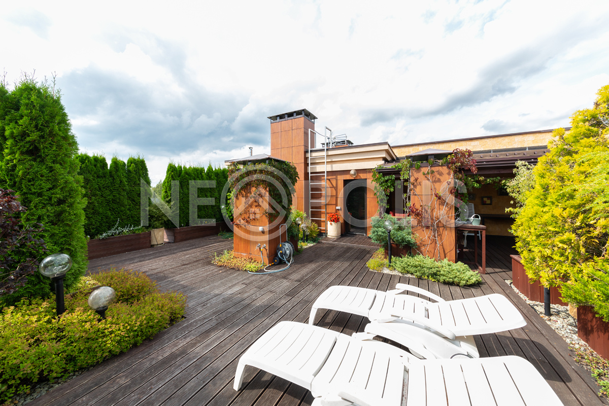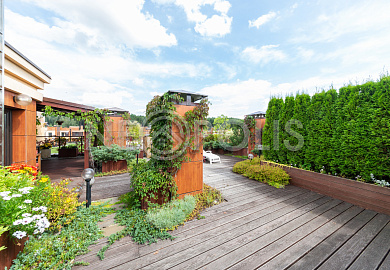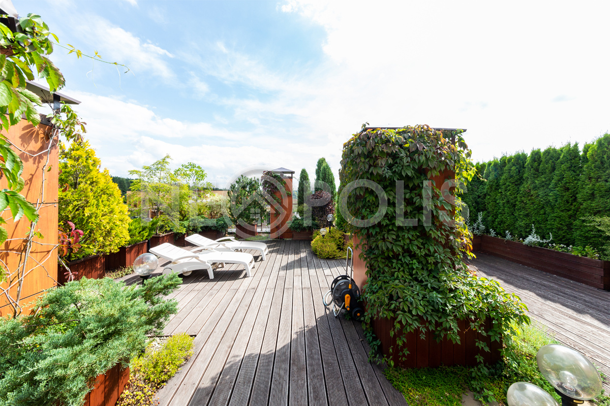- 3-й этаж (крыша):эксплуатируемая плоская крыша, на которой устроен живописный сад с системой автоматического полива и навес для зоны отдыха (80 кв.м.)