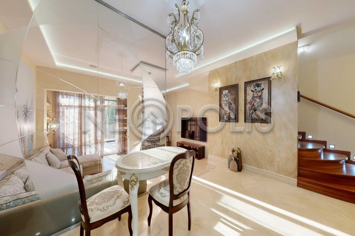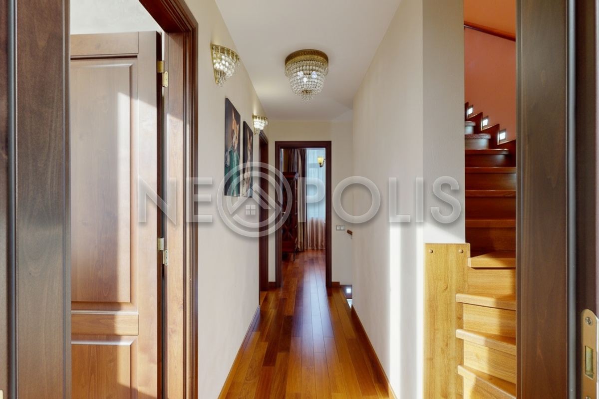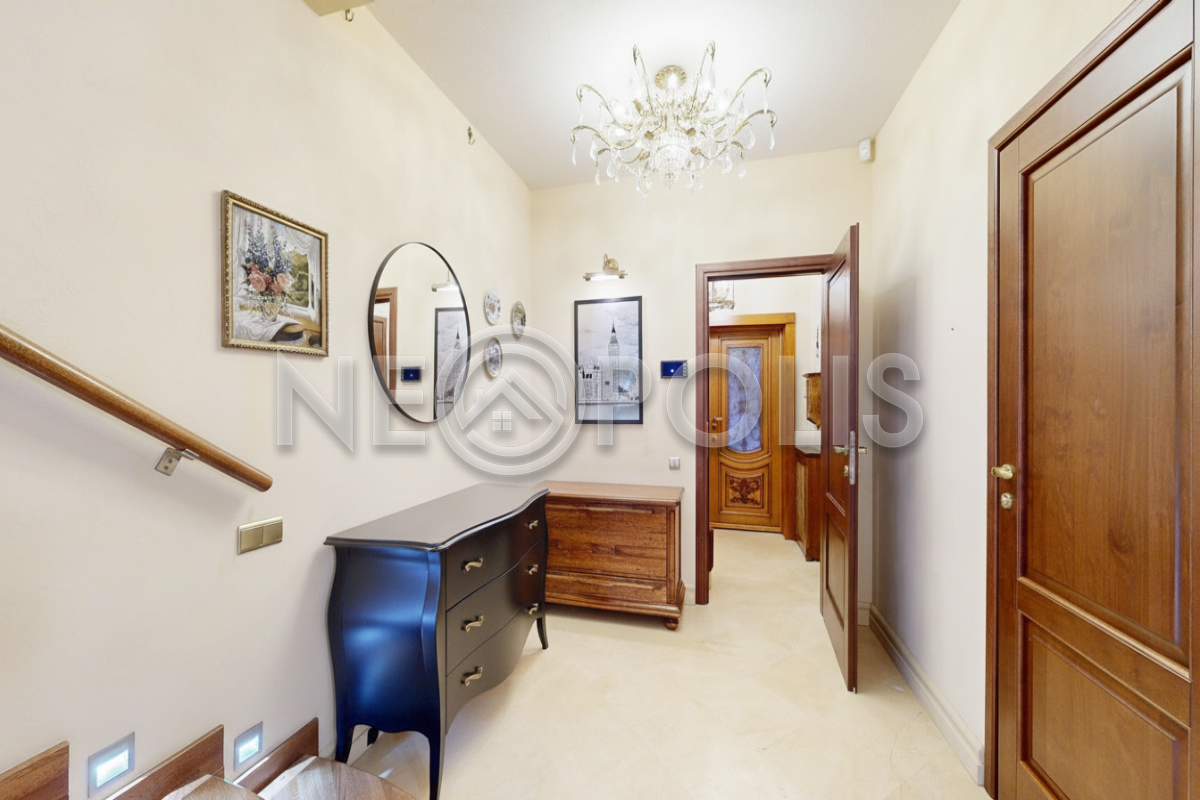 Объект расположен в комфортном для проживания поселке, на благоустроенном участке с видом на лес и ландшафтным дизайном. Полностью готов к круглогодичному проживанию. Отделка выполнена в классическом стиле из дорогих натуральных материалов.