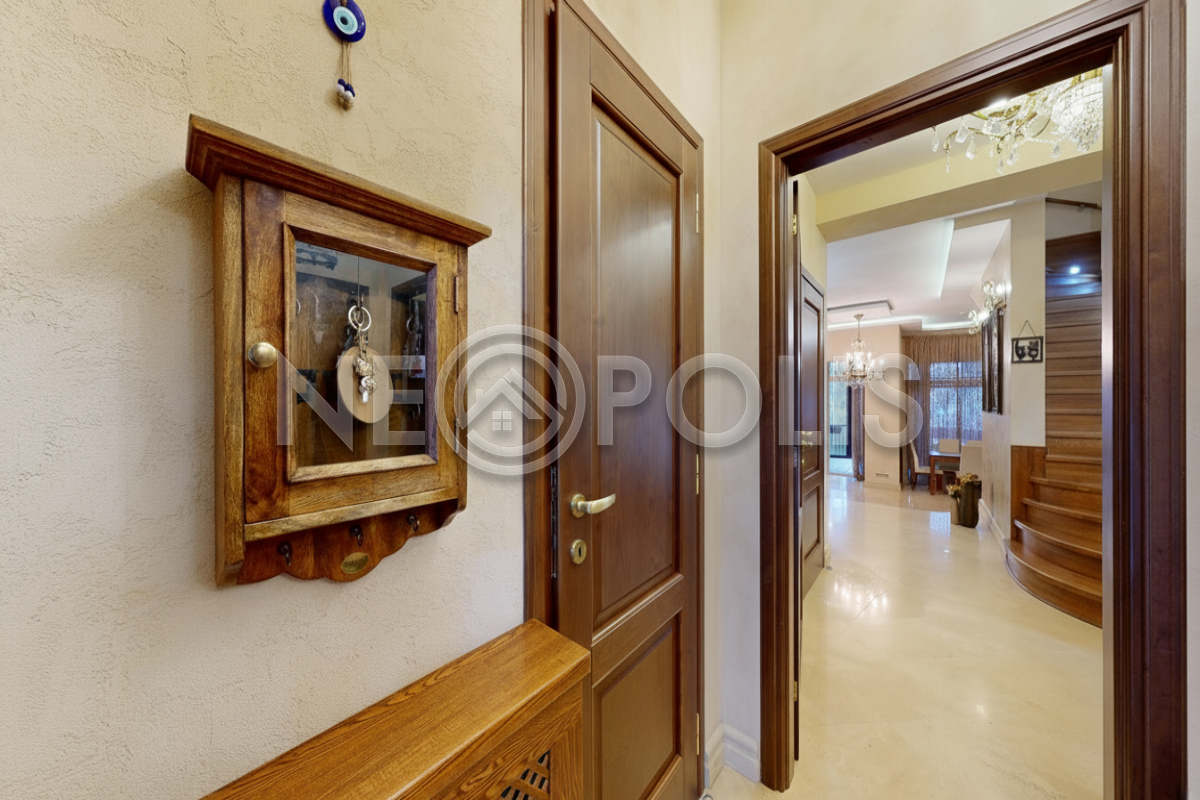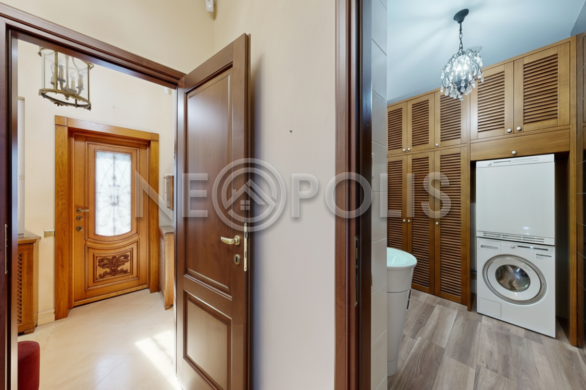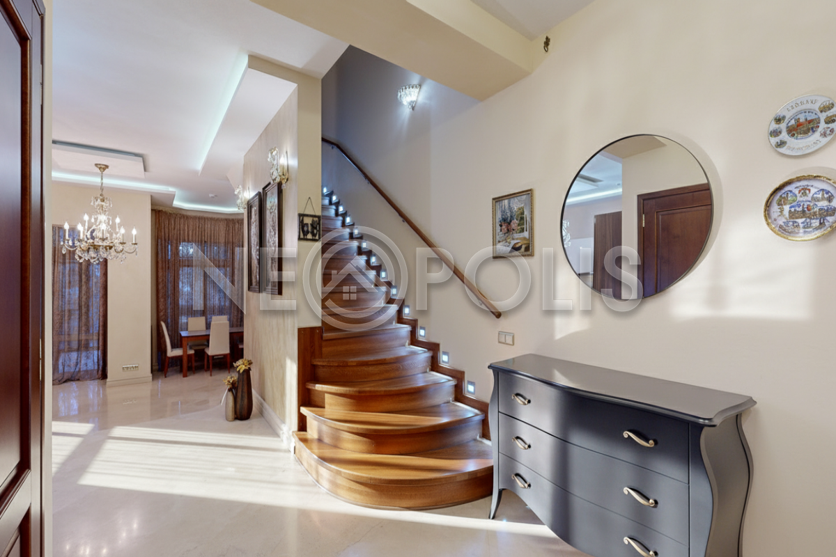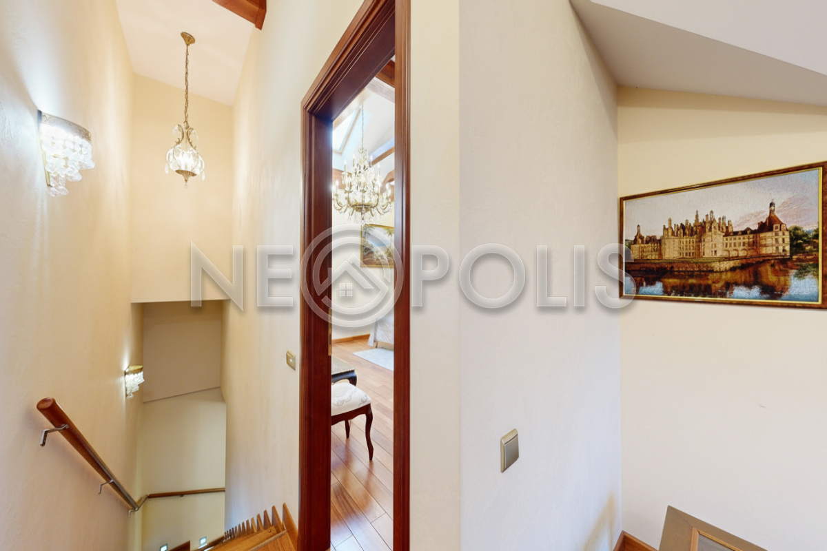 Объект расположен в комфортном для проживания поселке, на благоустроенном участке с видом на лес и ландшафтным дизайном. Полностью готов к круглогодичному проживанию. Отделка выполнена в классическом стиле из дорогих натуральных материалов.