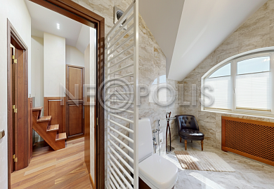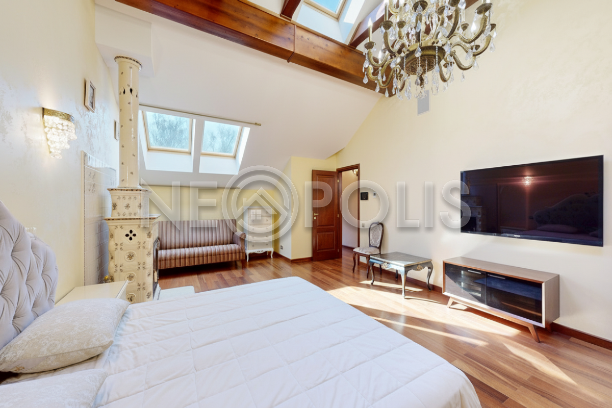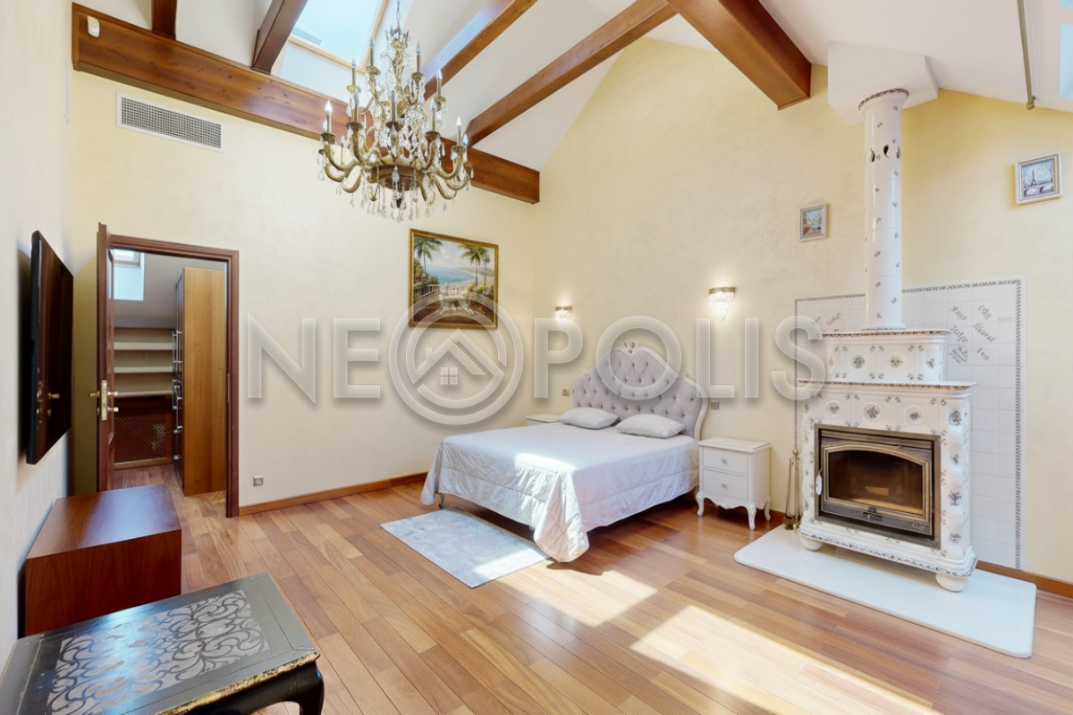 - 3 этаж:холл с зоной отдыха, мастер-спальня с дровяным камином с изразцами со своей гардеробной и санузел с душевой