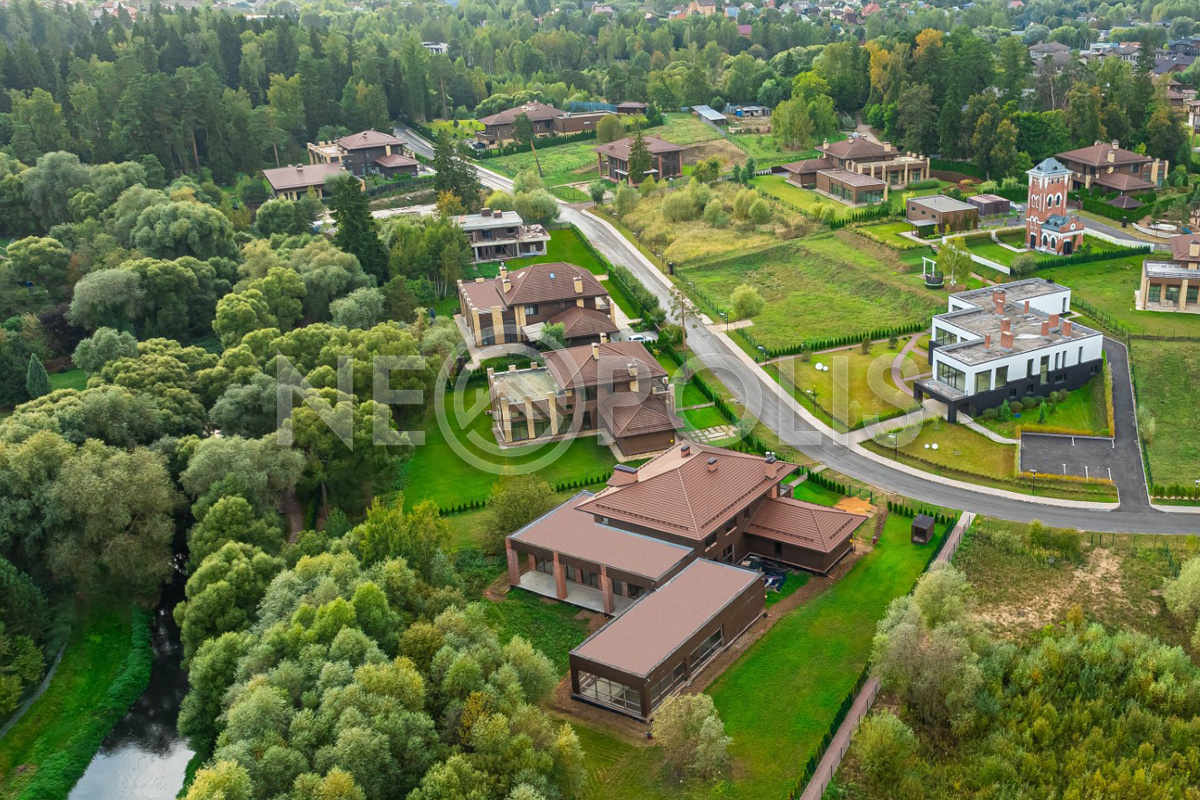 Поселок полностью благоустроен. Ландшафтным проектированием поселка занимались профессиональные дизайнеры, объединившие участки единой ландшафтной концепцией, предусматривающей полное отсутствие заборов между домами и визуальное вертикальное деление с помощью живых изгородей и холмов.