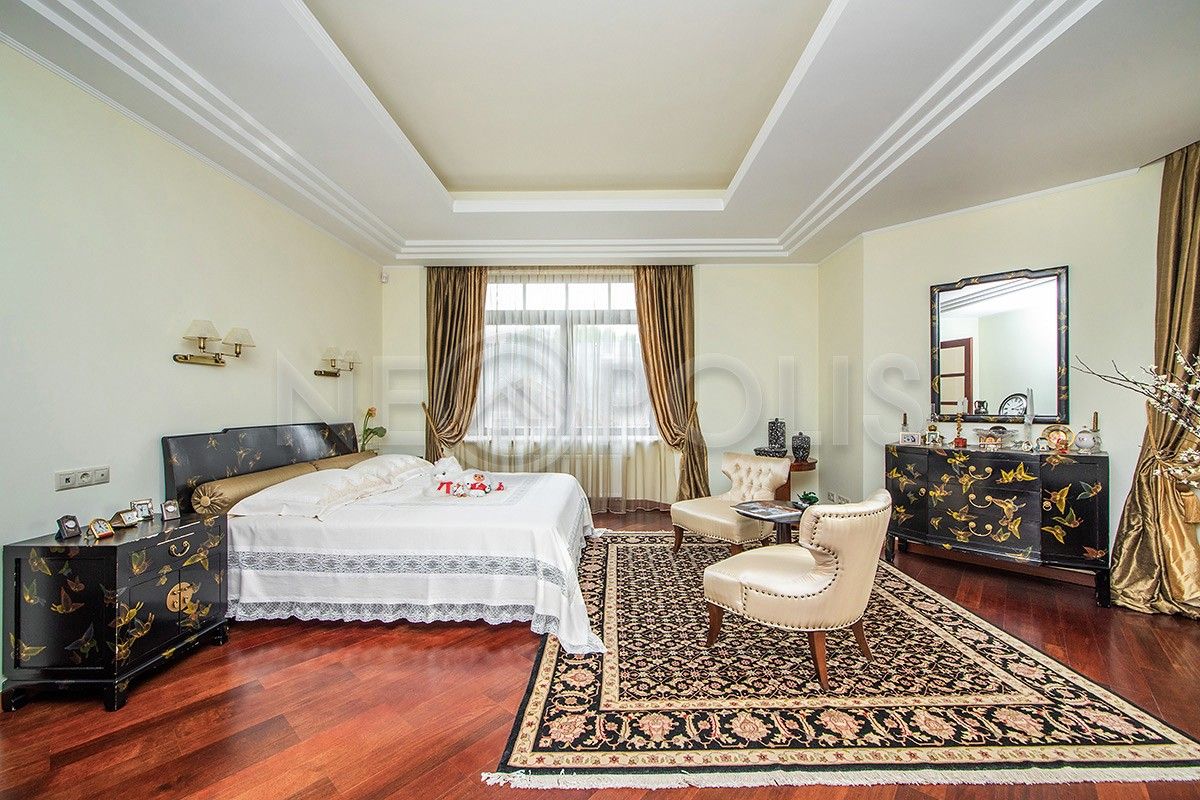 Объект расположен в комфортном для проживания поселке, на благоустроенном участке с видом на лес и ландшафтным дизайном. Полностью готов к круглогодичному проживанию. Отделка выполнена в классическом стиле из дорогих натуральных материалов.