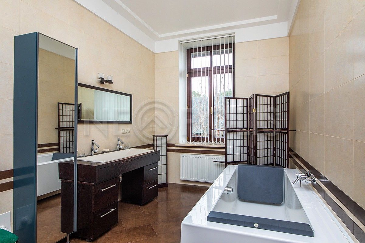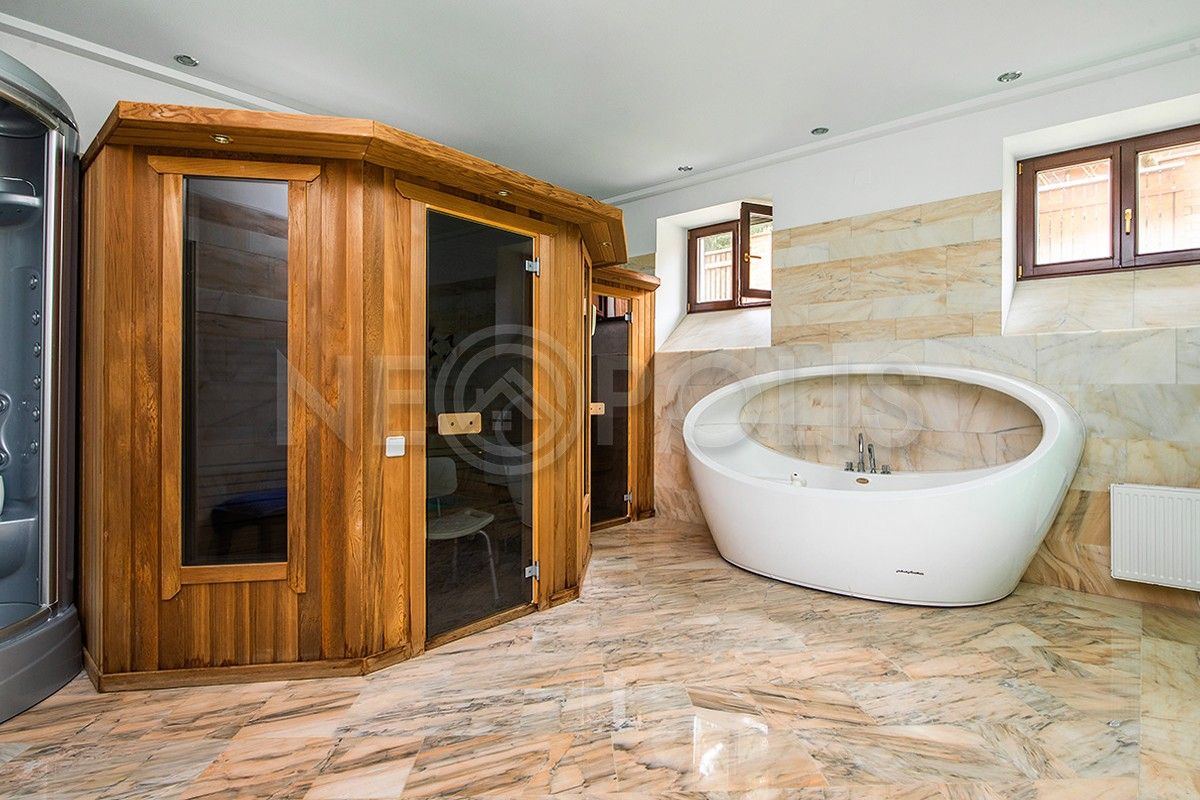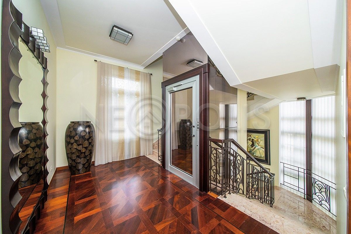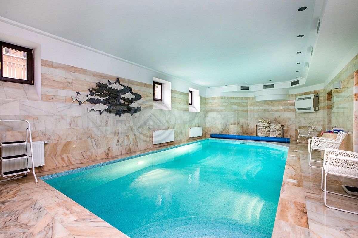 - Цокольхолл, тренажерный зал, бильярд, специально оборудованный винный погреб, бассейн 11х6 метров с системой очистки и вентиляции, финская сауна из натурального дерева, джакузи, кабина для загара, гардеробная, постирочная, гладильная, встроенная душевая с санузлом.