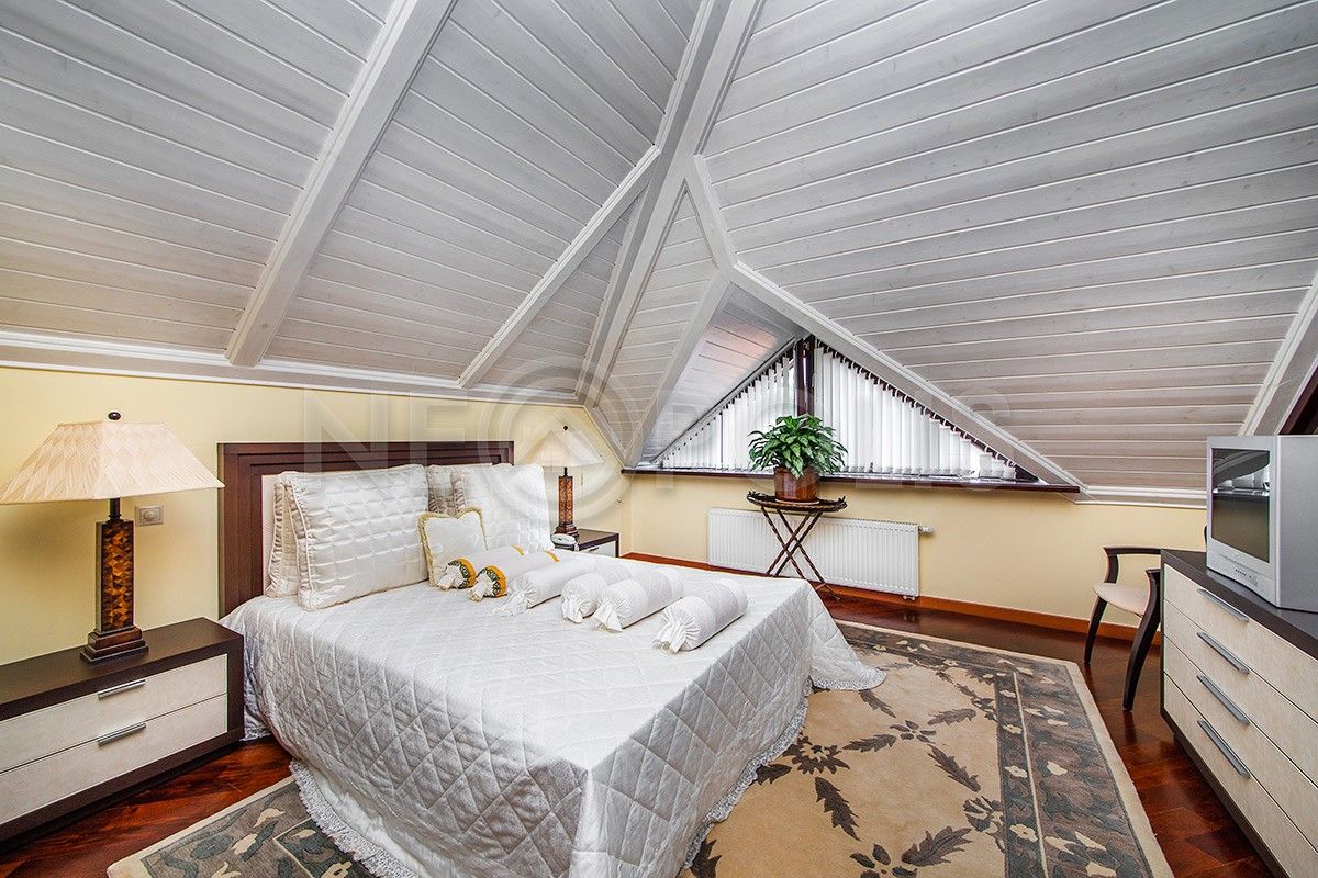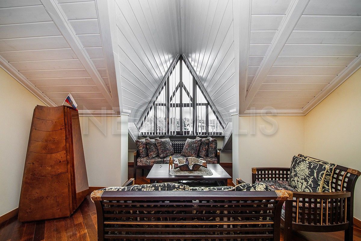 - Мансардакомната с выходом на балкон, кинотеатр, спальня с санузлом, 2 кладовые.