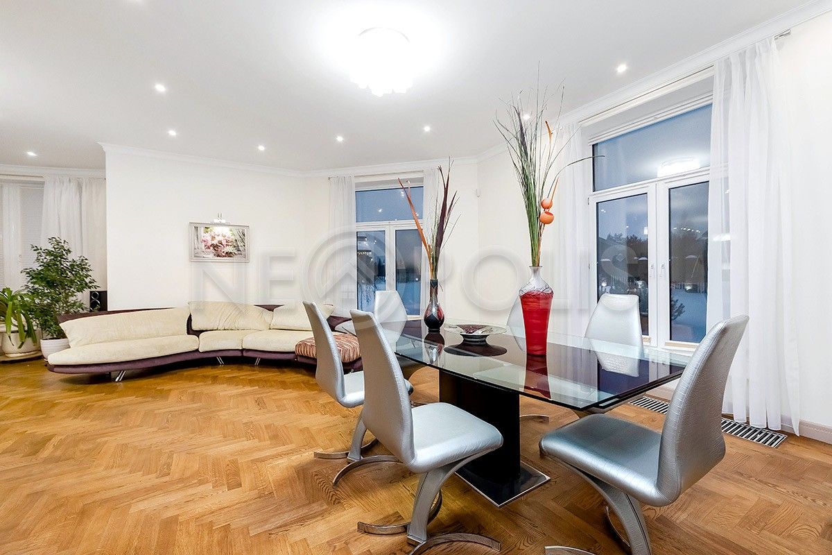 Объект расположен в комфортном для проживания поселке, на благоустроенном участке с видом на лес и ландшафтным дизайном. Полностью готов к круглогодичному проживанию. Отделка выполнена в классическом стиле из дорогих натуральных материалов.