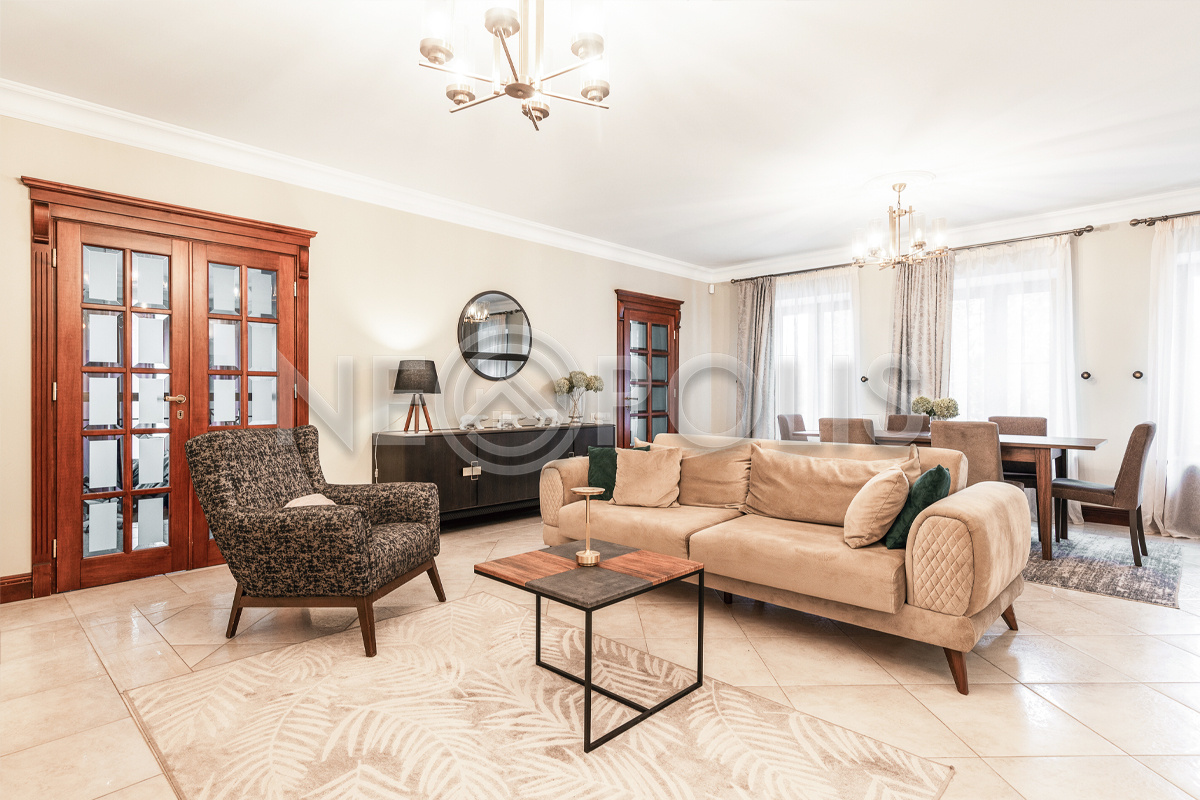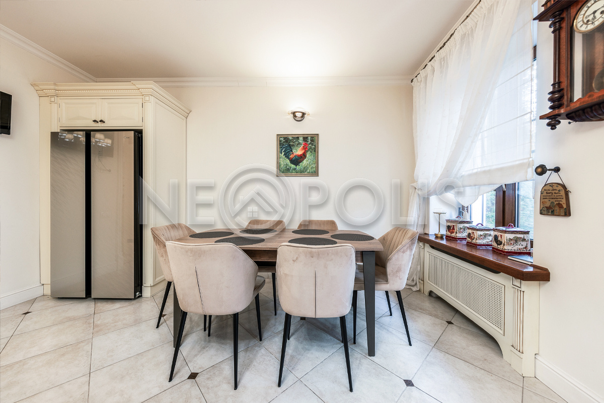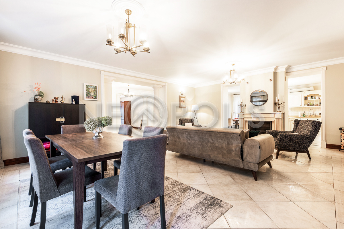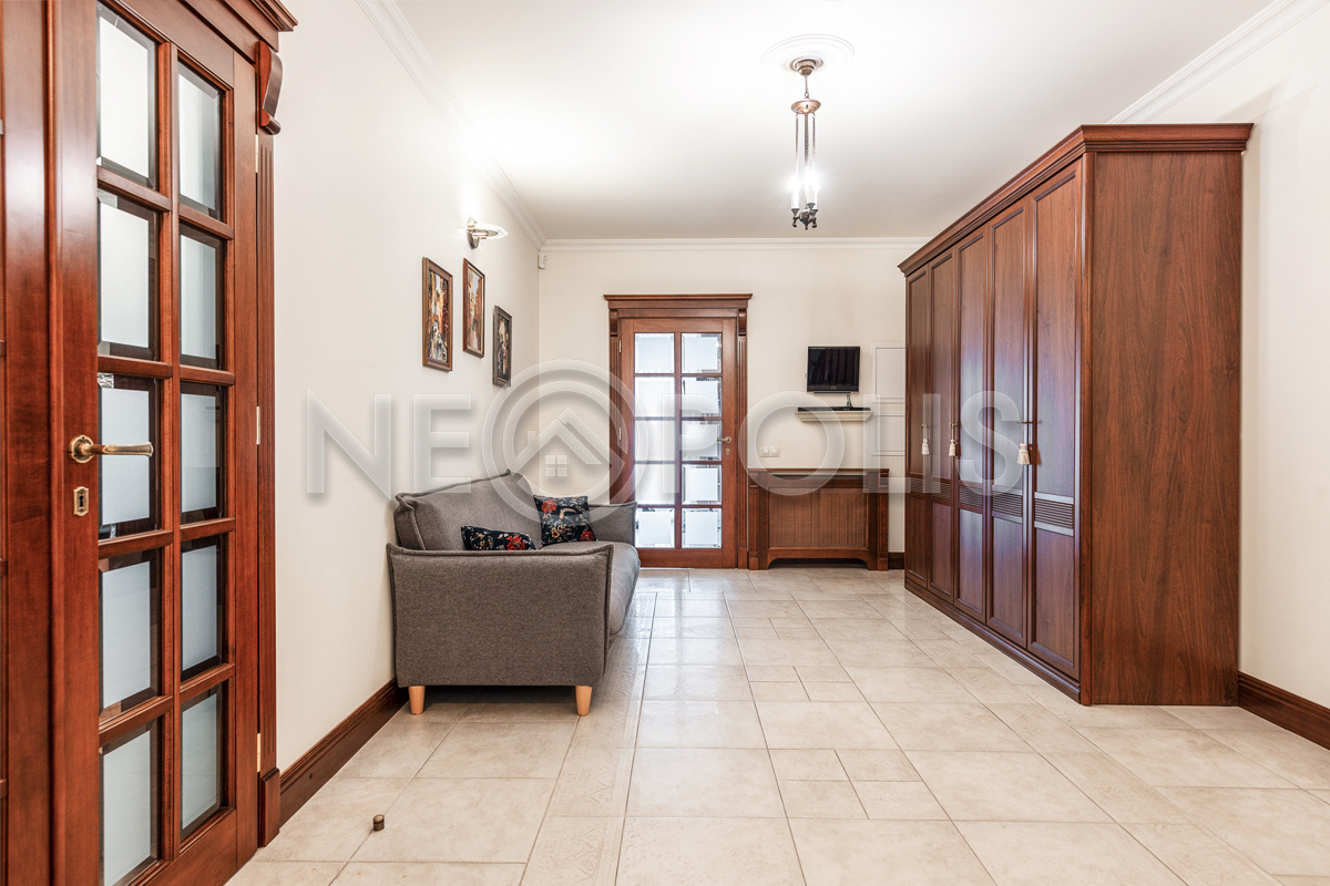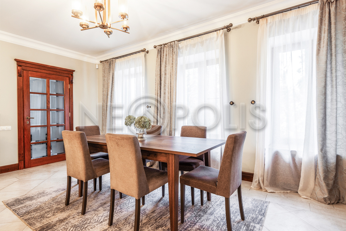 Объект расположен в комфортном для проживания поселке, на благоустроенном участке с видом на лес и ландшафтным дизайном. Полностью готов к круглогодичному проживанию. Отделка выполнена в классическом стиле из дорогих натуральных материалов.