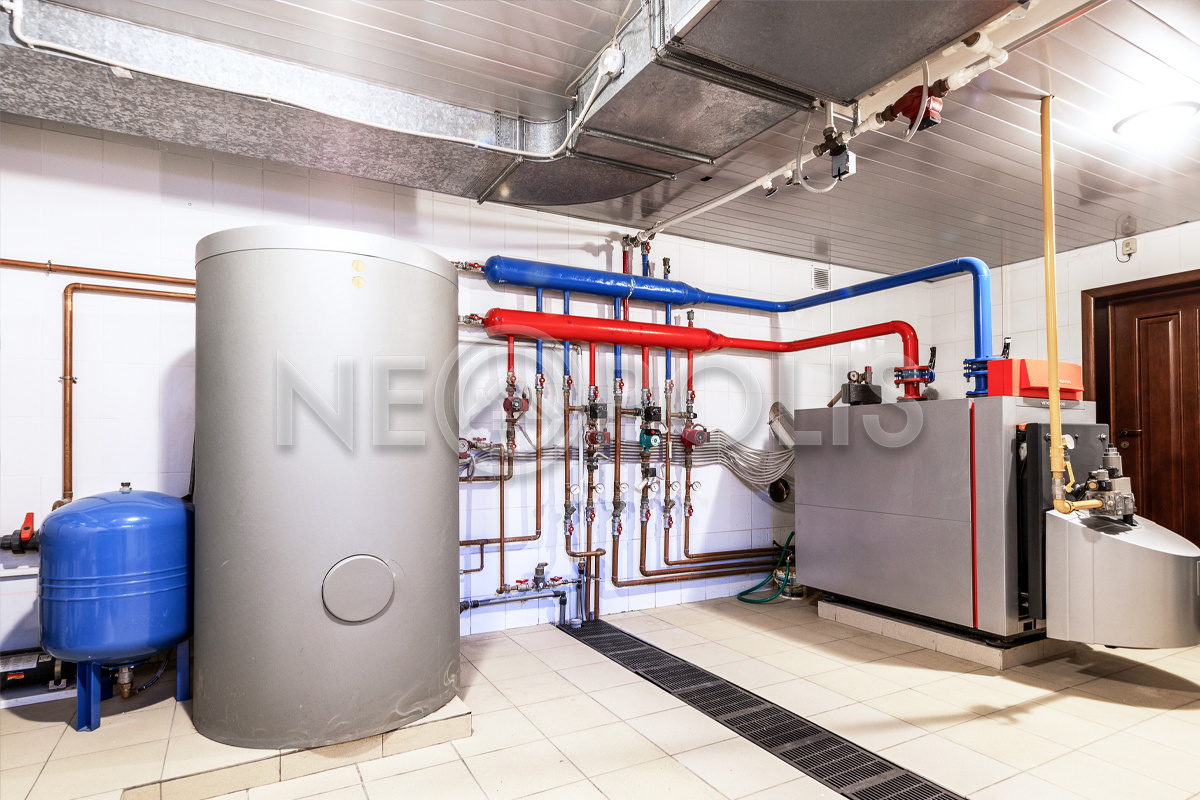 магистральный, установлен немецкий газовый котел Viessmann 120 кВт; дизельный генератор ENERGO 24 кВт с автоматическим включением (Франция)