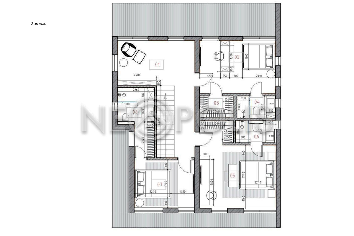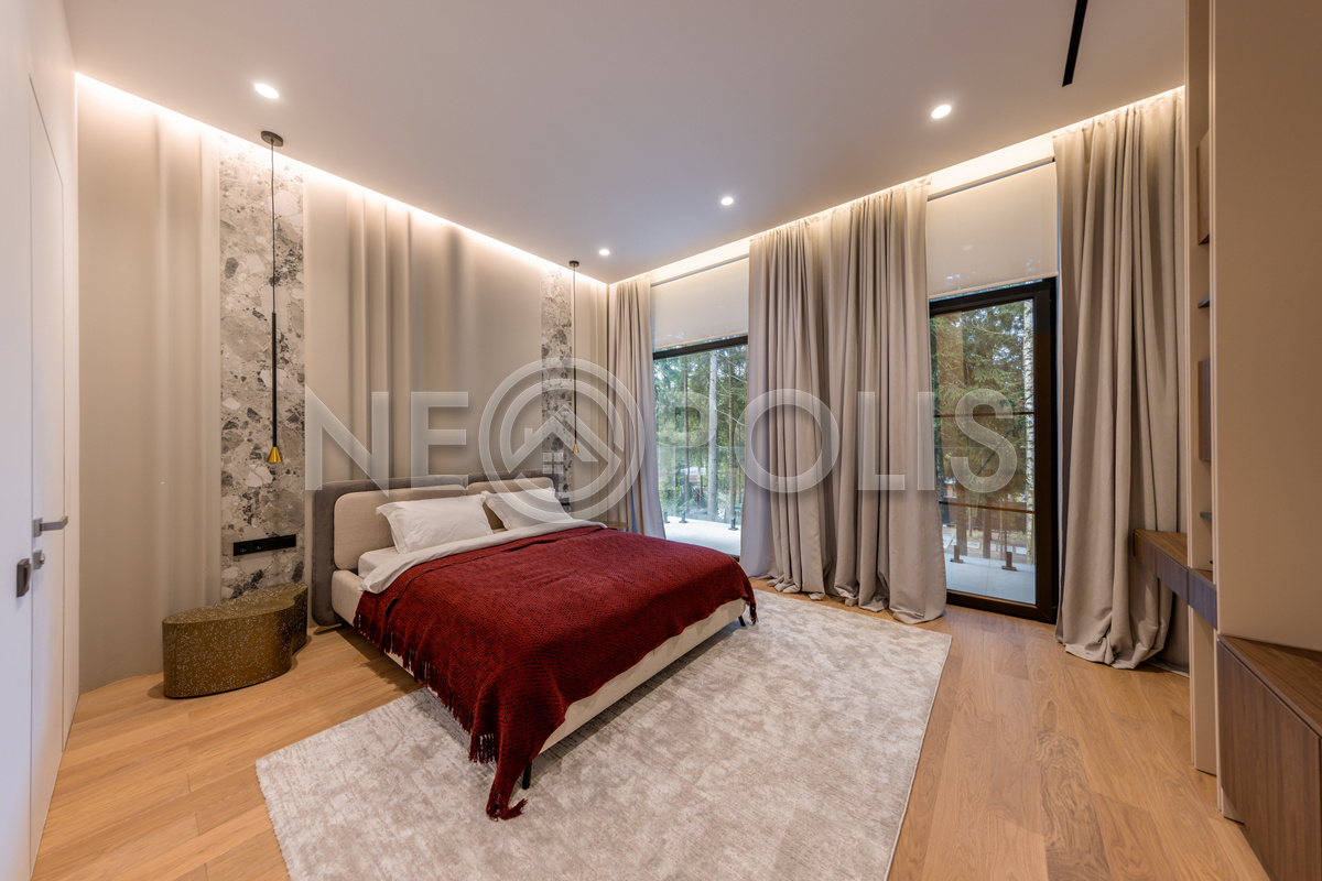- 2 этаж:холл-библиотека, мастер спальня с гардеробной и ванной комнатой, спальня с гардеробной и ванной комнатой, спальня с ванной комнатой.